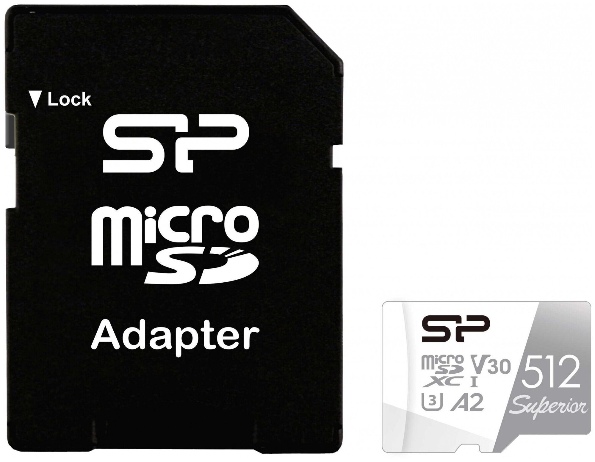 Карта памяти microSDXC UHS-I U3 SILICON POWER Superior 512 ГБ 100 МБ/с Class 10 1 шт. переходник SD SP512GBSTXDA2V20SP