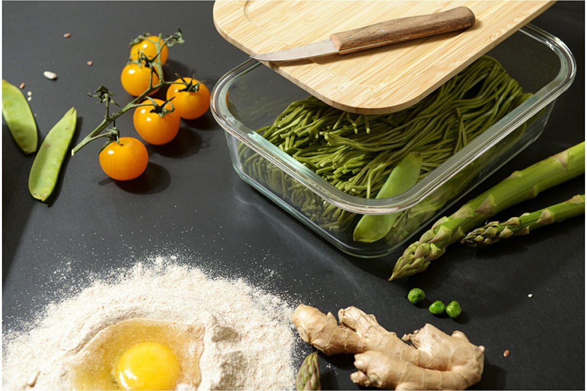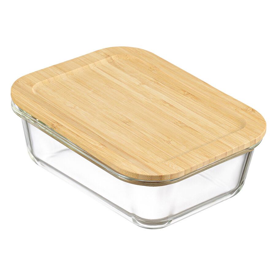 Модель: Контейнер для еды стеклянный с крышкой из бамбука 1050 мл