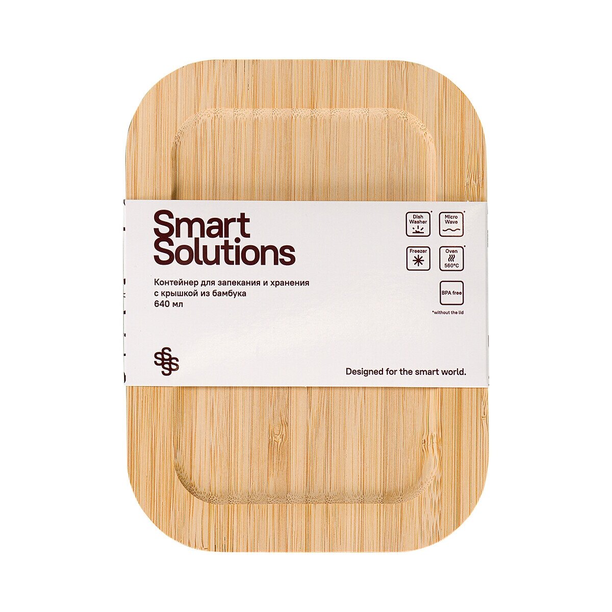 - Контейнер для еды стеклянный с крышкой из бамбука Smart Solution