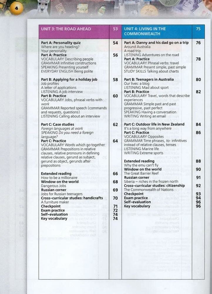 Что такое экотуризм и чем обусловлена его популярность? Что необычного в реке Волге? Ответить на эти и другие вопросы помогут разделы Cross-curricular studies и Window on the world, направленные на развитие межпредметных и межкультурных связей, а также раздел Russian corner, посвященный родной культуре.