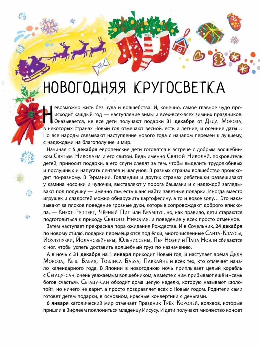 Великолепная книга как внешне, так и по содержанию. В сборник зимних сказок вошли сказки со всего мира, отдельно описаны и проиллюстрированы все известные новогодние и рождественские символы (герои). Сказки как на один разворот, так и на 3-4. Иллюстрации специфические, как и во всей серии кругосветок, но ребёнку понравились. Слог приятный, читать легко и интересно. Многие сказки раньше не читала и не слышала.
