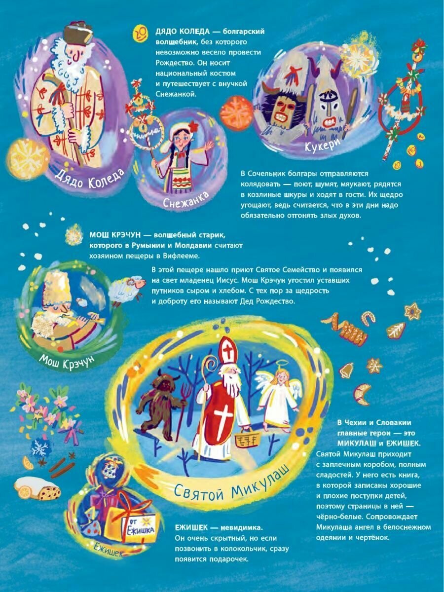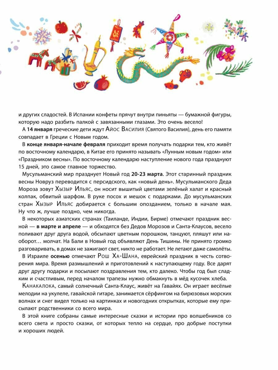 Оказывается, Дед Мороз и Санта-Клаус - далеко не единственные волшебники, которые дарят детям подарки на Новый год, у многих народов есть свои собственные герои... И появление их почти всегда связано с прекрасными историями и легендами. Кыш Бабай, Йоулупукки, Товлис Бабуа, Папа Ноэль, Батюшка Рождество и другие персонажи обитают в разных странах, но их всех объединяет любовь к детям и взрослым.