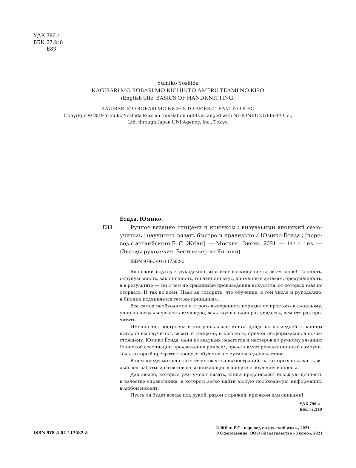 Ручное вязание спицами и крючком. Визуальный японский самоучитель: научитесь вязать быстро и правильно (Ёсида Юмико); ООО "Издательство "Эксмо", 2021