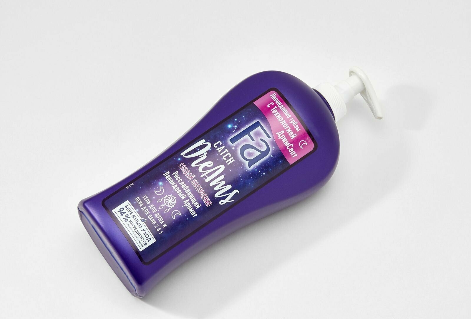 Fa: Смелее к приключениям! Почувствуй легкую свежесть, погрузись в мир новых впечатлений с пеной и гелем для душа Fa 2-в-1. Расслабляющий лавандовый аромат, технология ДримСент, улучшающая сон, и бережная к коже формула.