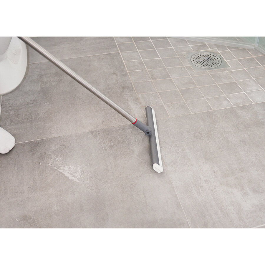 Насадка-скребок для пола состоит из прочного пластикового корпуса, в основе которого зафиксирован сгон для воды. Он представлен в виде двойной полоски, выполненной из плотного износостойкого материала. Конструкция держателя позволяет работать в двух направлениях: на себя и от себя. Насадка-скребок отлично удаляет воду и моющие средства даже в стыках напольных покрытий. Она идеально подходит для уборки в ванной комнате, на кухне, на террасе или у бассейна. Телескопическая ручка приобретается отдельно. Насадка-скребок легко крепится к ней с помощью защелкивающегося механизма.
