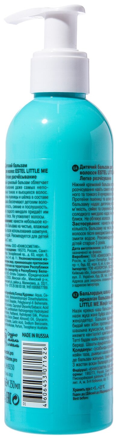 На сегодняшний день товар «Estel Детский бальзам "Лёгкое расчёсывание" для волос 250 мл (Estel ) (ЭХ99989416801)» можно купить с кешбеком в 1 магазине: Яндекс.Маркет
