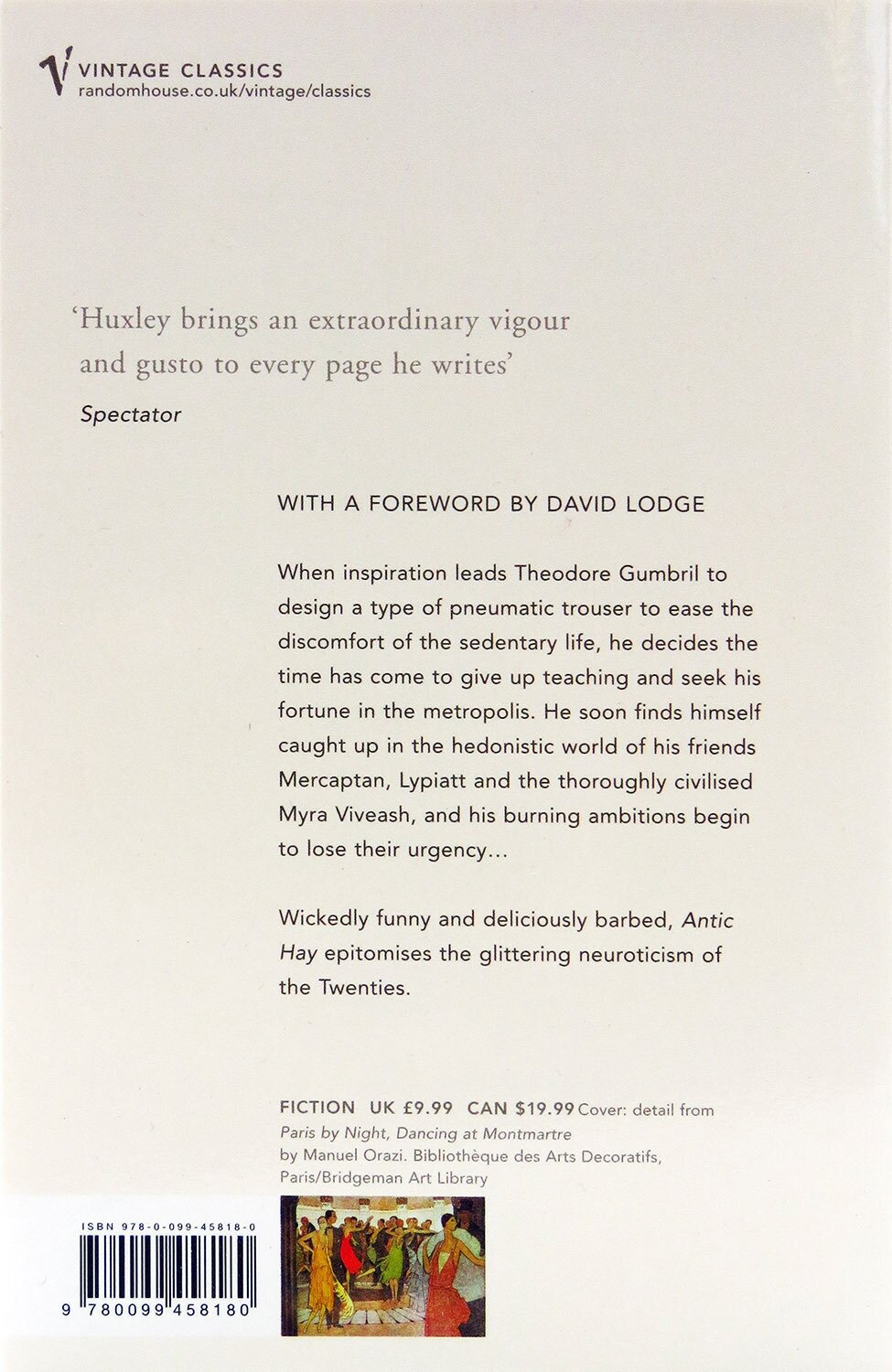 WITH A FOREWORD BY DAVID LODGE When inspiration leads Theodore Gumbril to design a type of pneumatic trouser cushion to ease the discomfort of sedentary life, he decides the time has come to give up teaching and seek his fortune in the metropolis. He soon finds himself caught up in the hedonistic world of his friends Mercaptan, Lypiatt and the thoroughly civilised Myra Viveash, and his burning ambitions begin to lose their urgency. . . Wickedly funny and deliciously barbed, Antic Hay epitomises the glittering neuroticism of the twenties.