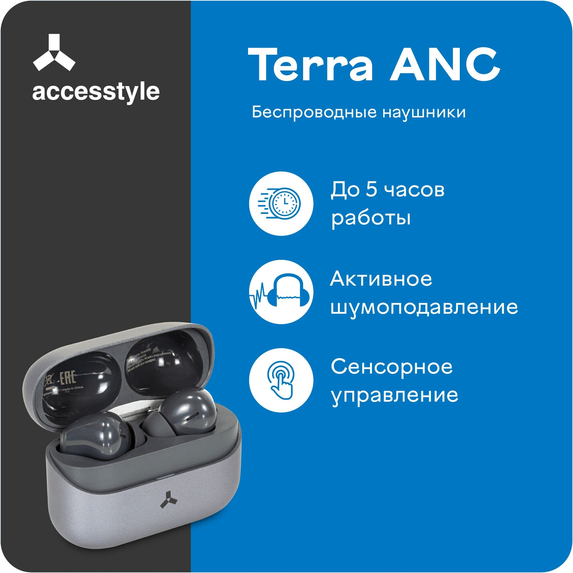 Гарнитура Accesstyle Terra ANC Bluetooth вкладыши серый [terra anc grey] Noname