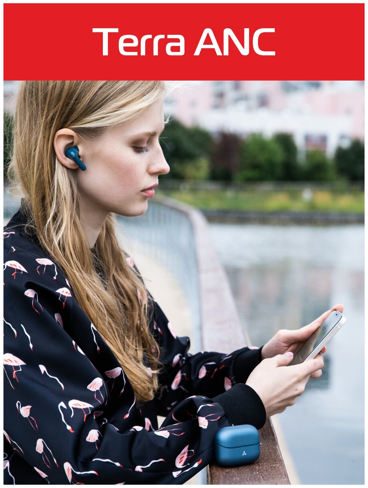 Эргономичные наушники с функцией активного шумоподавления и сенсорным управлением Terra ANC — TWS-наушники с активным шумоподавлением. Terra ANC созданы для города. Классический внешний вид, неброские, но насыщенные цвета покрытия на выбор, премиальное качество изготовления. Эти наушники — отличный компаньон топовому смартфону и уместный аксессуар к любому луку. Зарядного кейса хватает полностью зарядить наушники два-три раза. Вместе со временем работы до пяти часов от одного заряда — это до 15 часов воспроизведения вдали от розетки. За великолепную энергоэффективность и детальное плотное звучание отвечает процессор Airoha 1562, Bluetooth 5.2 и 10-миллиметровые мембраны динамиков. Режим шумоподавления добавляет спокойствия миру вокруг вас. Он анализирует внешний шум и отсекает его, помогая вам меньше отвлекаться от музыки, а вашему телефонному собеседнику — хорошо вас слышать. Авиаперелёт? Возьмите Terra ANC с собой. Аудиокнига в метро? Включите шумоподавление и слушайте тихий голос чтеца, не повышая громкости.