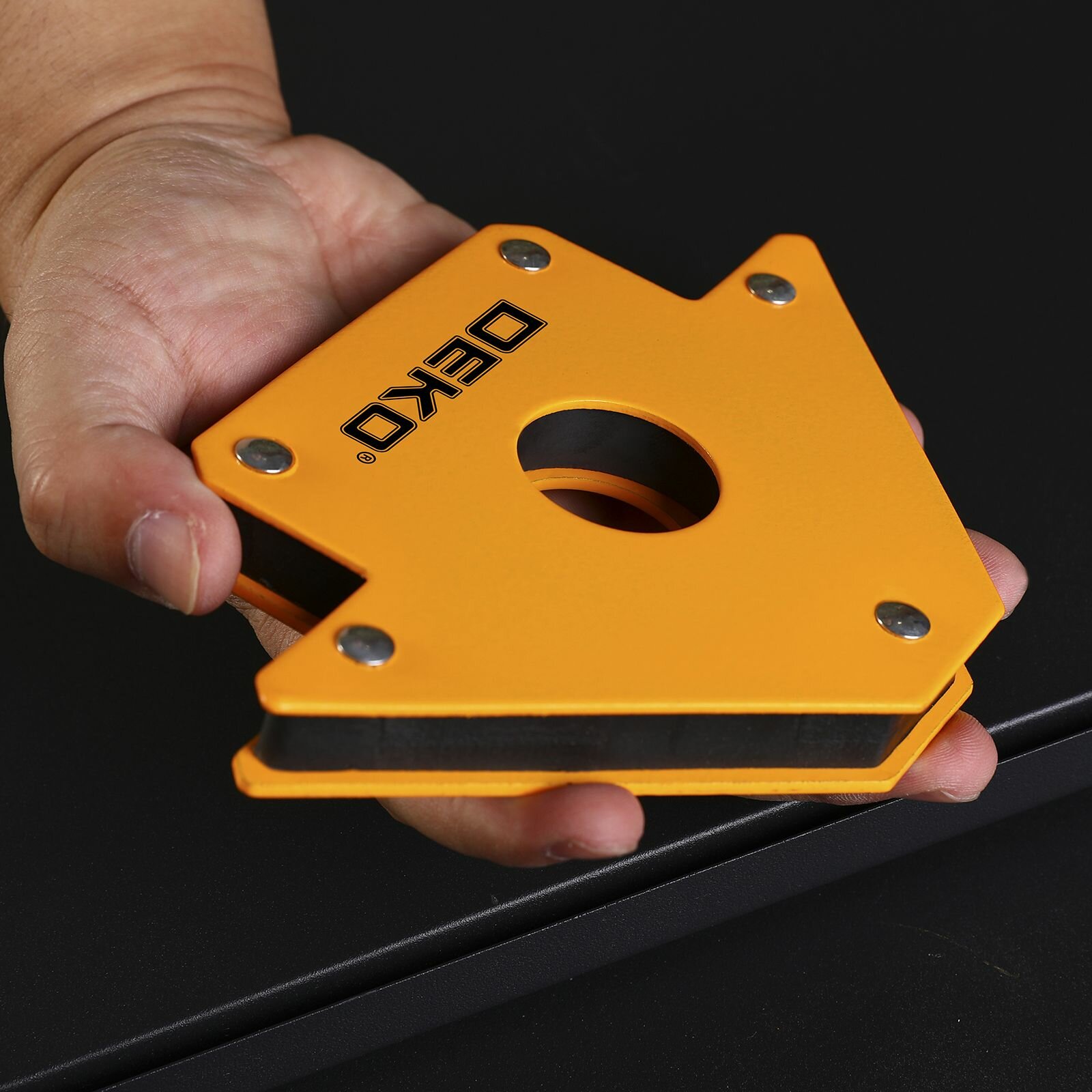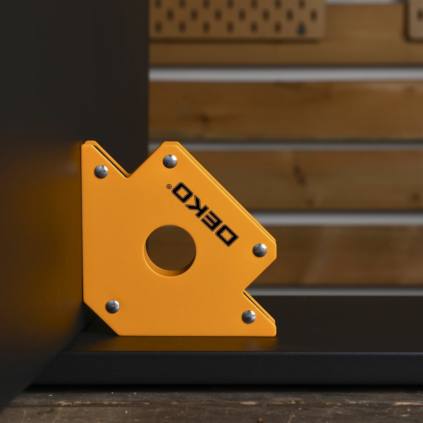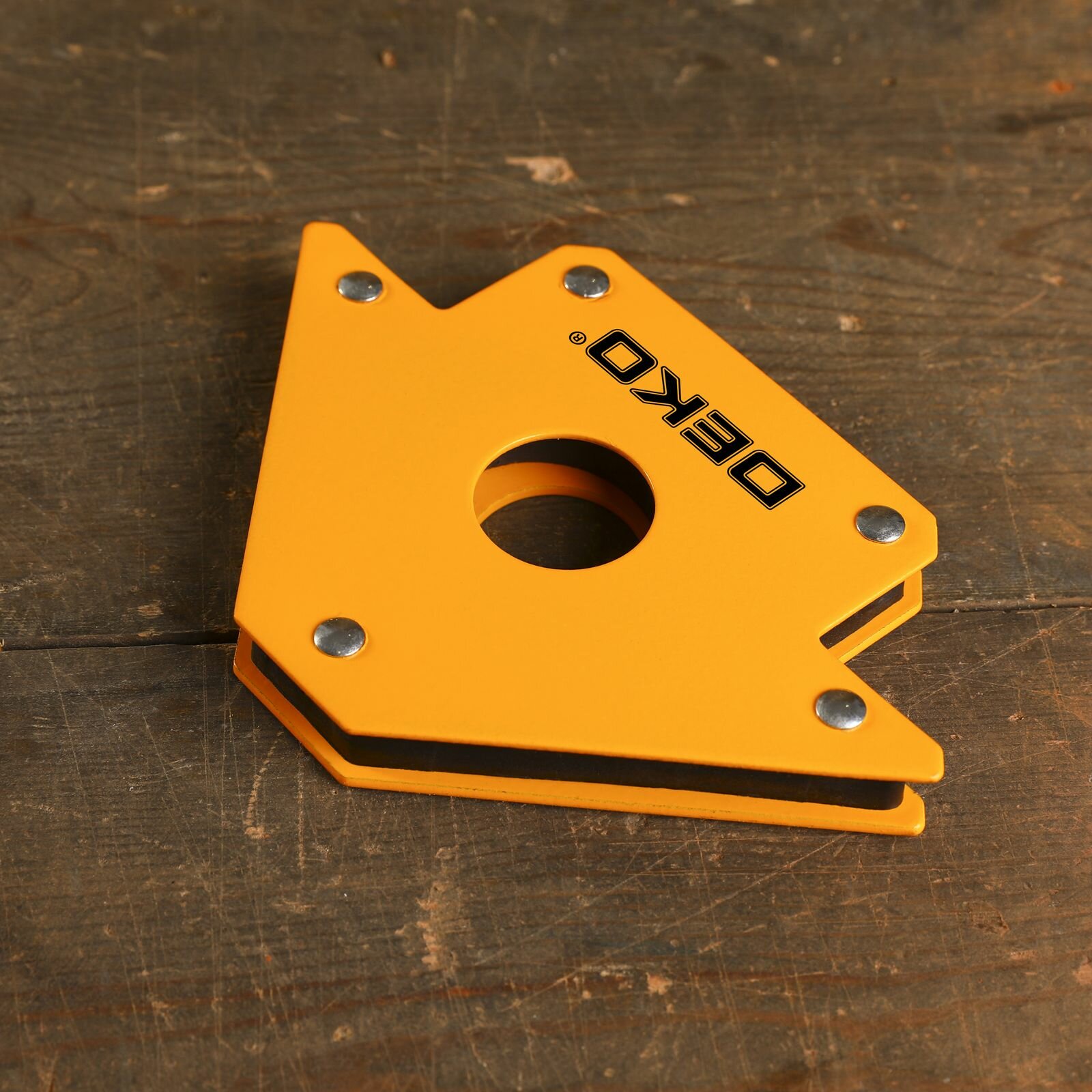Уголок магнитный для сварки DEKO DKMC2 предназначен для фиксации металлических деталей в процессе сварки и пайки под углами 45, 90 и 135 градусов. Удерживает вес до 22кг. Быстро и надежно фиксирует детали благодаря мощному магниту. Заменяет неудобные зажимы и струбцины.