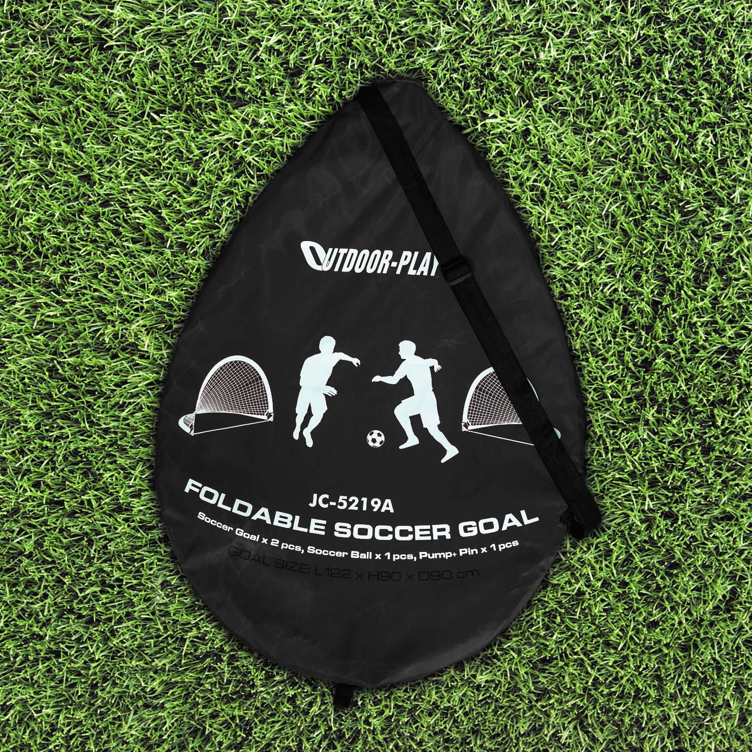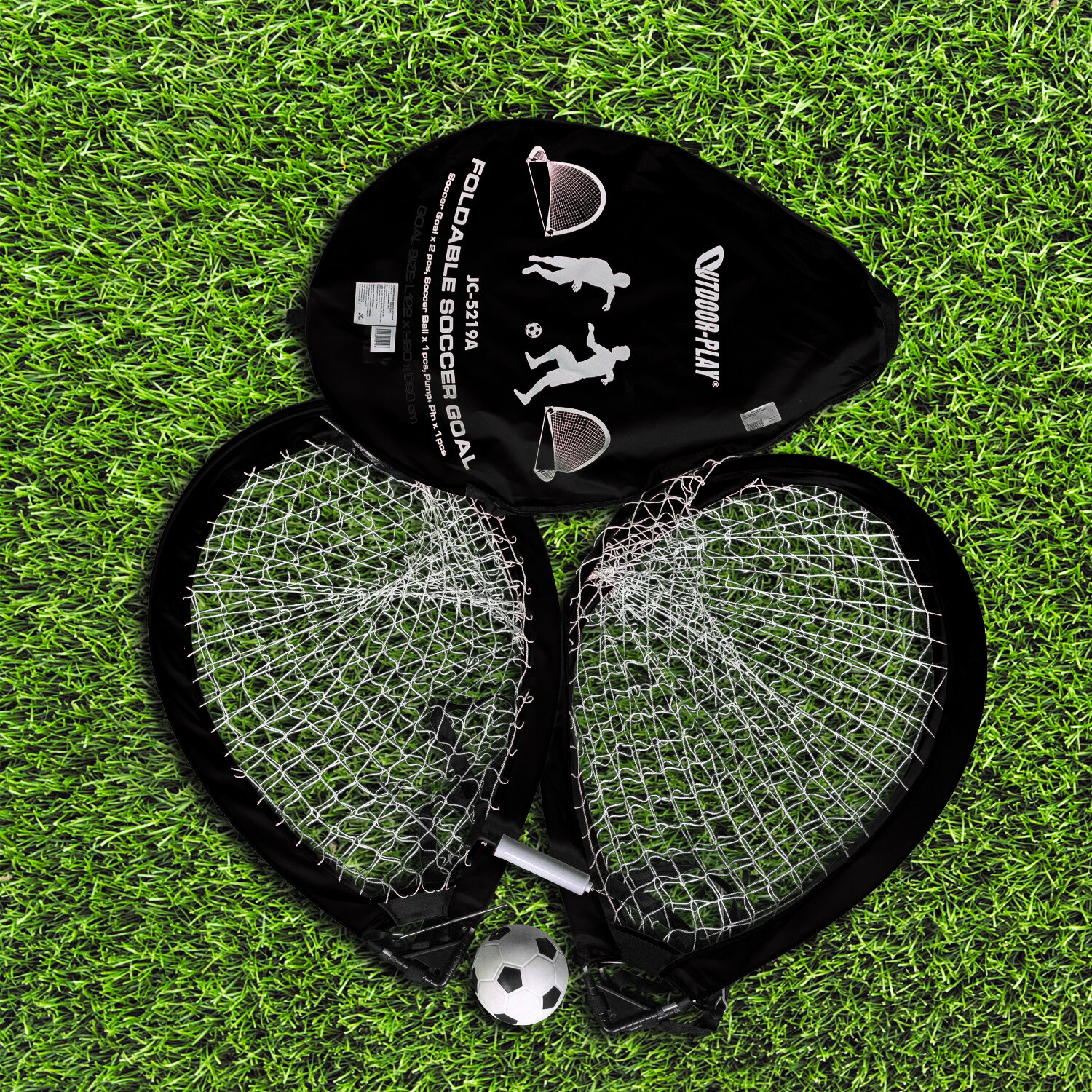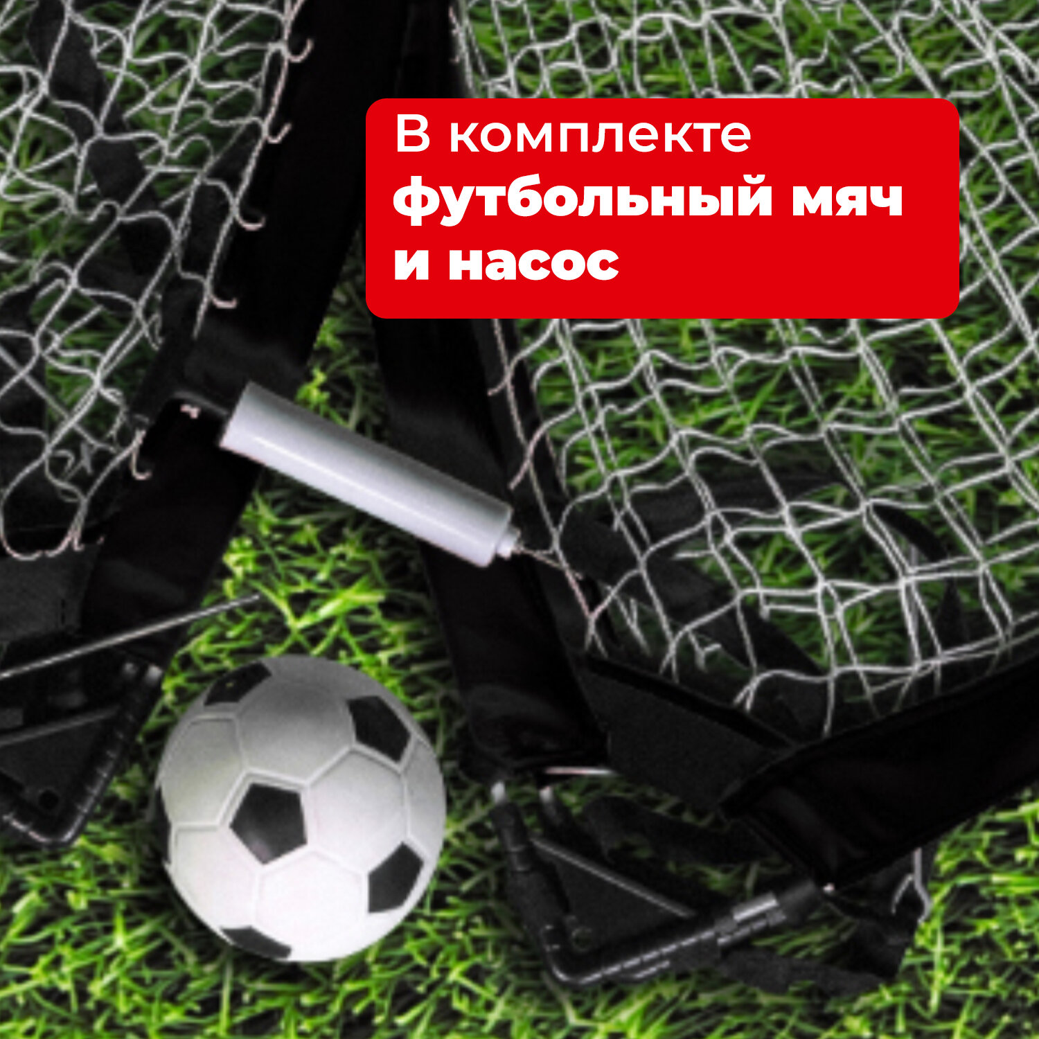 В комплекте 2 ворот размером 155х86х86 см, мяч с насосом и сумка - чехол.