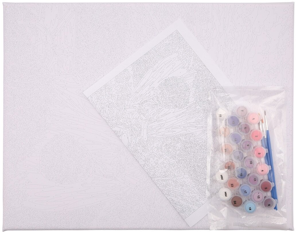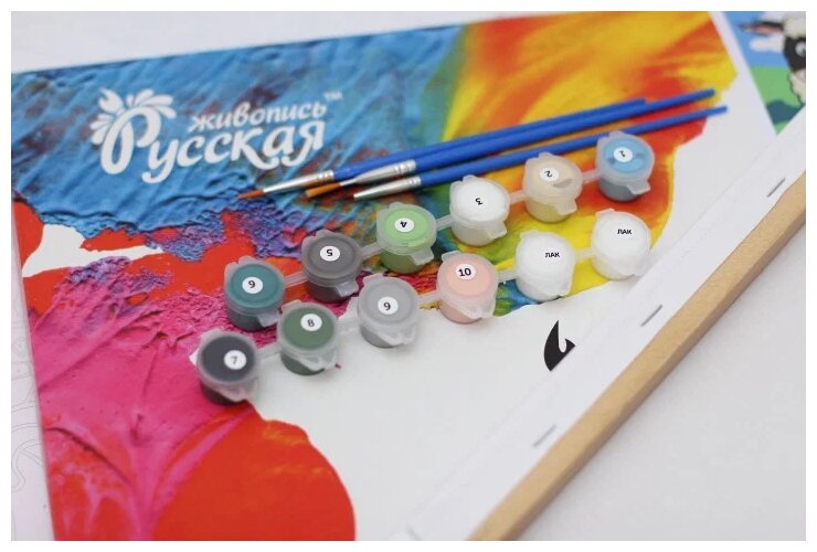 | Комплектация | Контрольный лист схема; набор красок и лак; Холст на подрамнике; акриловые краски, кисти -3 шт. |