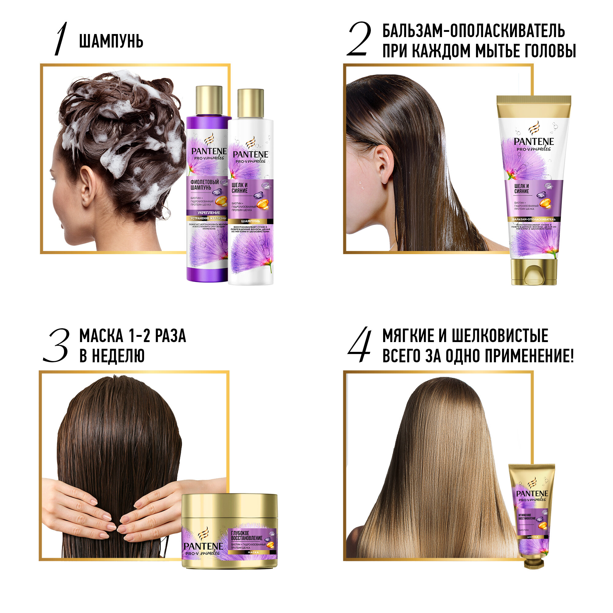 Серия «Шёлк и сияние» сочетает в себе силу научной формулы Pro-V с биотином с гидролизованным протеином шелка.