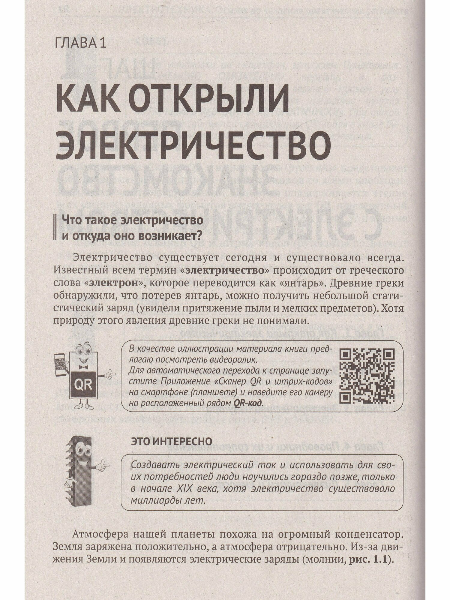 Книга посвящена электротехнике, определяющей сегодня нашу повседневную жизнь. Это интерактивный самоучитель для начинающих свой путь в электротехнику: от изучения основ в ходе экспериментов до практических работ по созданию законченных устройств и систем. В книге нет «теории ради теории». Изложено самое необходимое. Это позволит чувствовать себя уверенно при практической работе с электротехникой. Есть в книге и необходимые базовые формулы, без которых не понять принципа работы электротехнических устройств.
