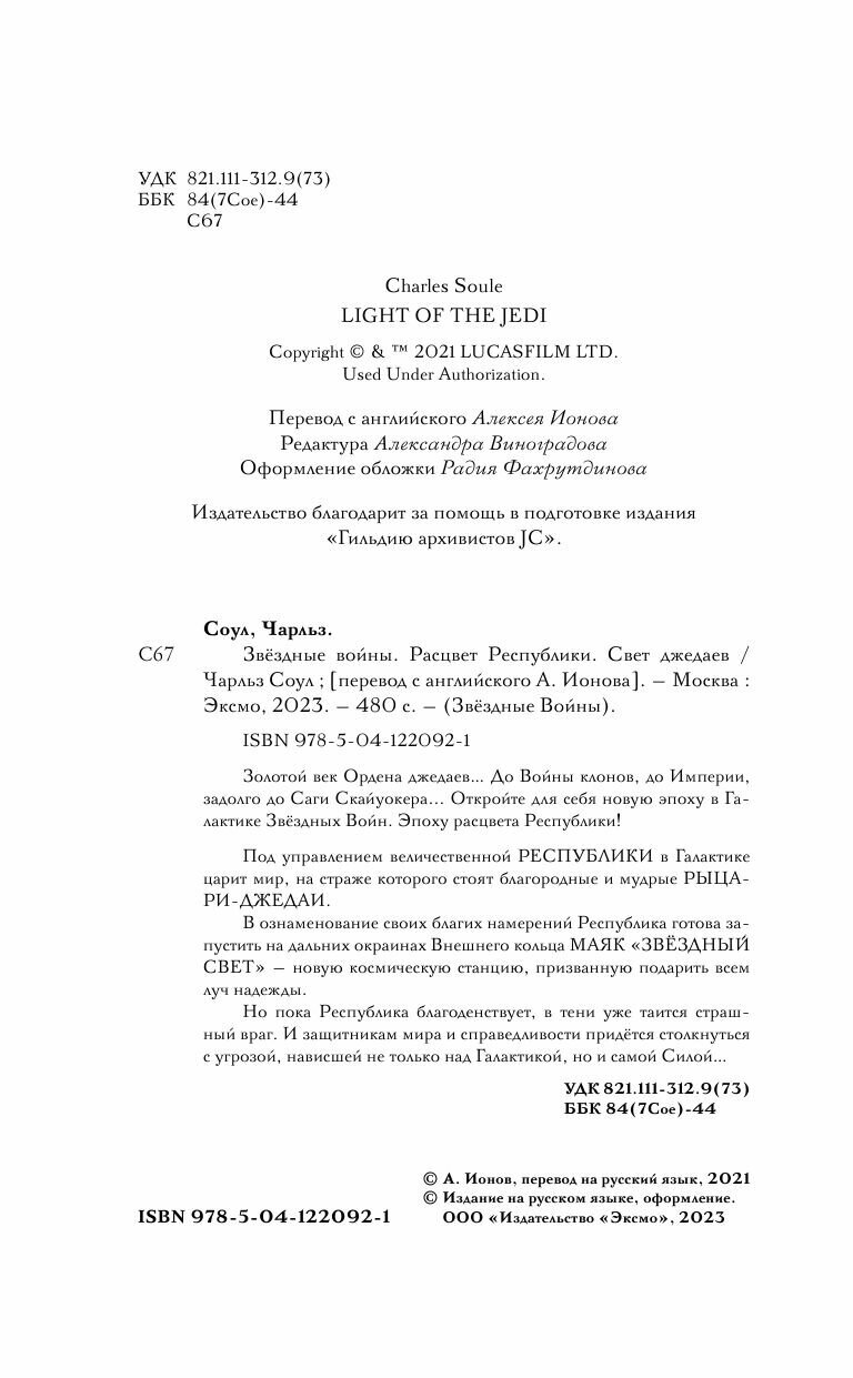 Звёздные войны: Расцвет Республики. Свет джедаев (Чарльз Соул); Эксмо, Fanzon, Редакция 1, 2022