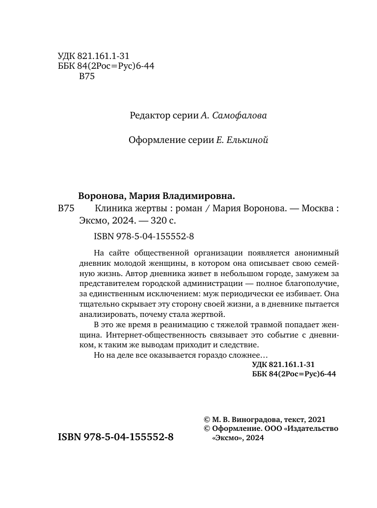 Книга: Клиника жертвы (Воронова Мария Владимировна); ООО "Издательство "Эксмо", 2021