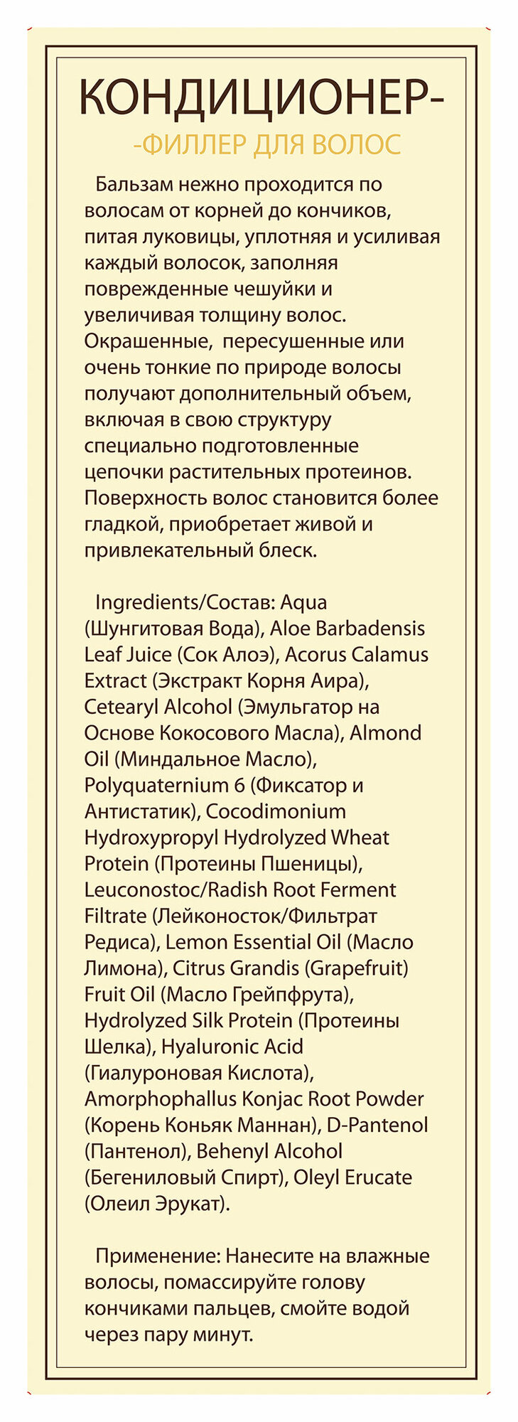 Бальзам нежно проходится по волосам от корней до кончиков, питая луковицы, уплотняя и усиливая каждый волосок, заполняя поврежденные чешуйки и увеличивая толщину волос. Окрашенные, пересушенные или очень тонкие по природе волосы получают дополнительный объем, включая в свою структуру специально подготовленные цепочки растительных протеинов. Поверхность волос становится более гладкой, приобретает живой и привлекательный блеск.