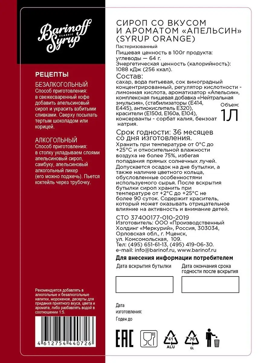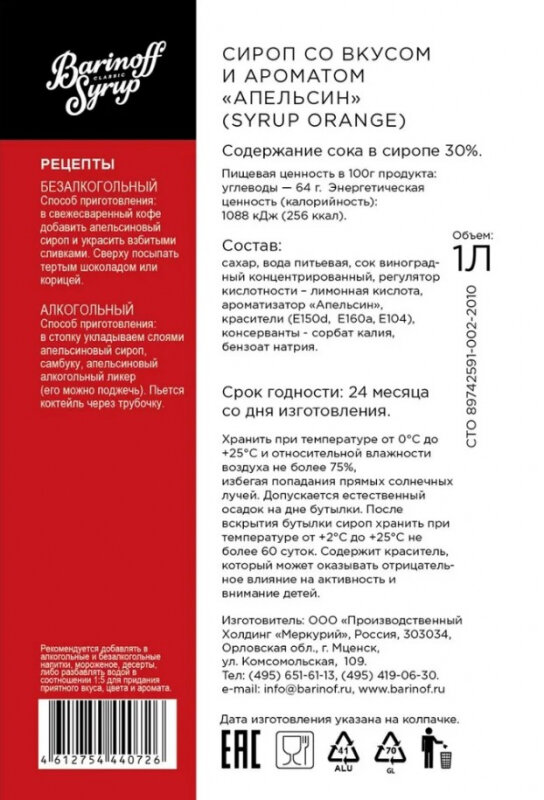 Сиропы Barinoff