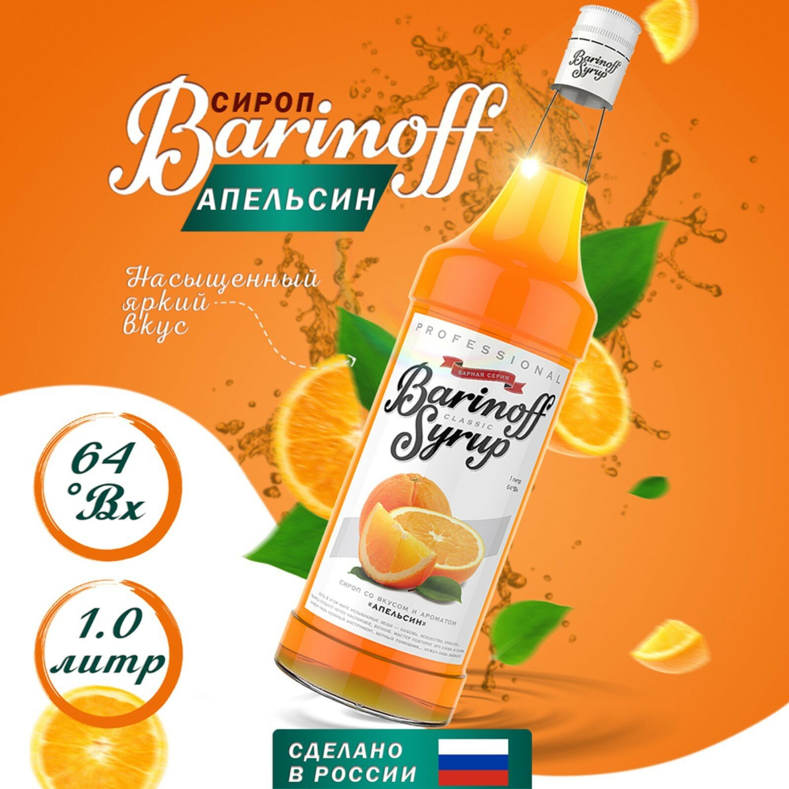 Сироп Barinoff Апельсин 1 л имеет оранжевый цвет, а его букет изобилует сладковатыми тонами спелых апельсинов. Густая консистенция десерта позволяет применять его не только для добавления в многочисленные блюда и напитки, но и для украшения выпечки и других кушаний. Для сиропа подходят дозаторы диаметром 31 мм.