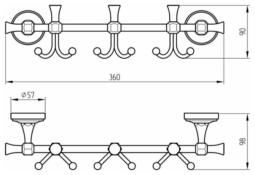 FORTUNA Планка с 3-мя двойными крючками L37 см, хром Планка с 3-мя крючками серии FORTUNA бренда MIGLIORE- многофункциональный аксессуар, который можно использовать в ванной комнате, сауне, на кухне, в корридоре или кладовке. Общая длина составляет 37 см, 3 крючка классической формы расположены на достаточном удалении друг от друга, что позволит удобно разместить большие полотенца и любые вещи. Изделие выполнено из латуни и имеет высококачественное хромо-никелиевое покрытие, которое при правильном уходе надолго сохранит свой блеск. Рекомендуется использовать чистящее средство бренда MIGLIORE для смесителей и аксессуаров с хромированным покрытием. Рекомендуется использовать чистящее средство бренда MIGLIORE для смесителей и аксессуаров с хромированным покрытием. Материал: Латунь; Оснащение: крепления (шурупы)