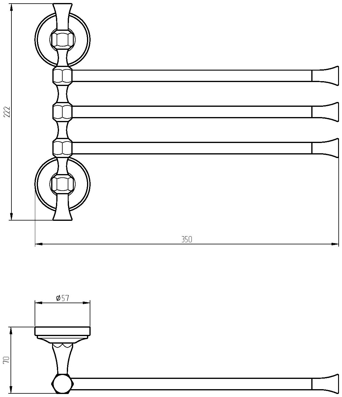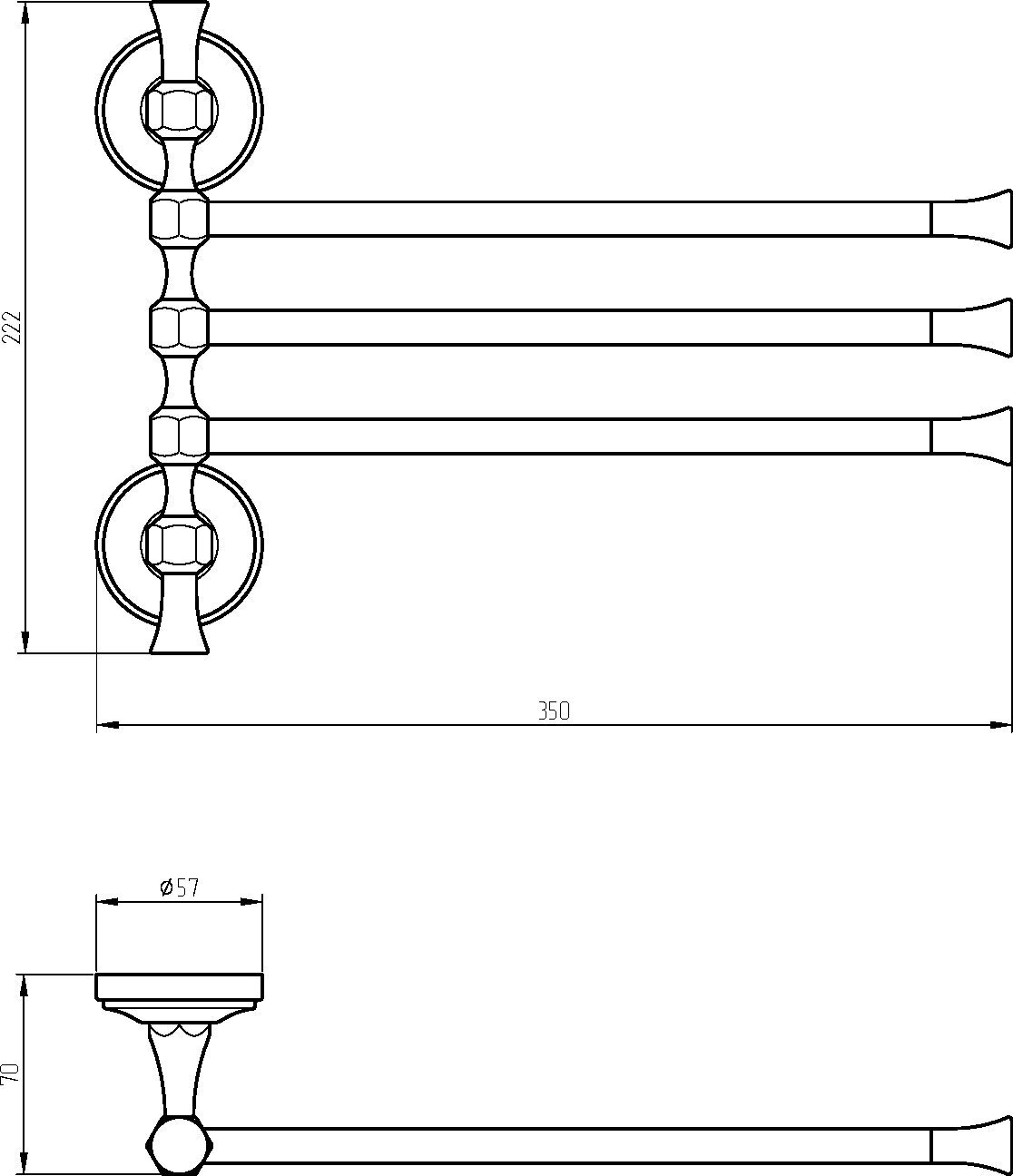 FORTUNA Полотенцедержатель тройной поворотный L32 x h24 cm, бронзаПолотенцедержатель тройной поворотный серии FORTUNA бренда MIGLIORE длиной 32 см очень удобен в использовании. Чтобы повесить его достаточно небольшого пространства, держатели можно развернуть в одну или другую сторону в зависимости от места на стене. Материал — латунь, покрытие цвета бронза. Внимание: бронзовое покрытие достаточно деликатное и для ухода рекомендуется протирать изделие мягкой безворсовой тряпочкой с мыльным раствором и вытирать насухо или использовать чистящее средство бренда MIGLIORE для смесителей и аксессуаров с деликатными покрытиями бронза, золото, медь.Внимание: бронзовое покрытие достаточно деликатное и для ухода рекомендуется протирать изделие мягкой безворсовой тряпочкой с мыльным раствором и вытирать насухо или использовать чистящее средство бренда MIGLIORE для смесителей и аксессуаров с деликатными покрытиями бронза, золото, медь.Материал: Латунь; Оснащение: крепления (шурупы)