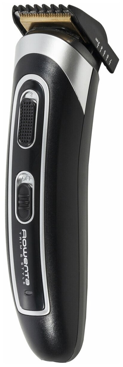 Мультинабор 13 в 1 для стрижки, бритья лица и тела Rowenta Multi Trim&Style - это универсальный набор для профессионального и детального ухода за волосами день за днем. Триммер 13в1 с комплектом насадок помогает ухаживать за бородой, делать профессиональную стрижку и удалять нежелательные волосы на лице и теле, чтобы вы выглядели безупречно. Титановое покрытие лезвий мужского триммера в 3 раза прочнее стали и увеличивает их срок службы и остроту, обеспечивая высочайшее качество стрижки, а мощный мотор 6500 об/мин гарантирует безупречный результат за один проход и позволяет экономить время. Лезвия триммеров Rowenta для бороды и усов способны прослужить до 15 лет, чтобы каждое использование устройства было комфортным. В комплект входит ряд аксессуаров для поддержания идеальной стрижки в любых условиях и точной детализации: лезвие шириной 32 мм с двумя регулируемыми насадками от 3 до 12 мм позволяет ухаживать за вашей бородой, поддерживать ее форму и создавать ваш персональный стиль - от эффекта легкой небритости до трехдневной щетины, экстраширокое лезвие предназначено для стрижки и в сочетании с шестью фиксированными насадками (3 мм, 6 мм, 9 мм, 12 мм, 15 мм, 18 мм) помогает поддерживать идеальную длину волос, специальная насадка с вращающимися лезвиями предназначена для быстрого и безболезненного удаления нежелательных волос в носу и ушах, а бритва для тела и комфортного бритья гарантирует идеально чистые результаты. На 100% водонепроницаемый корпус с технологией Wet&Dry позволяет вам использовать триммер в душе, а съемные лезвия можно мыть под струей воды для поддержания гигиенической чистоты. Универсальный триммер Ровента для стрижки и бритья щетины оснащен литий-ионным аккумулятором, который обеспечит вам до 120 минут непрерывного использования при постоянной мощности - этого достаточно для проведения нескольких полноценных стрижек. А функция быстрой зарядки делает аккумуляторное устройство еще более удобным: чтобы провести одну полную стрижку, хватает всего 11 минут зарядки (полностью аккумулятор заряжается всего за 1 час 30 минут). Практичный чехол позволяет компактно хранить устройство и аксессуары вместе и брать весь комплект с собой в любую поездку. Поддерживайте выбранный образ на профессиональном уровне с мультитриммером Rowenta Multi Trim&Style!