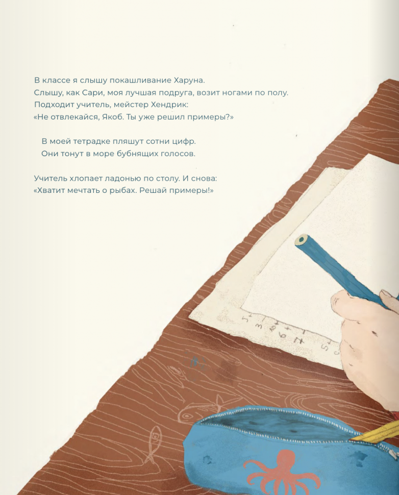 Он хочет знать всё. Сколько оттенков у синего цвета? Какие рыбы живут в море? Когда Якоб вырастет, он станет называть себя капитаном Немо. Он свободен, как рыба в воде, и подводная лодка уносит его в глубины океана.