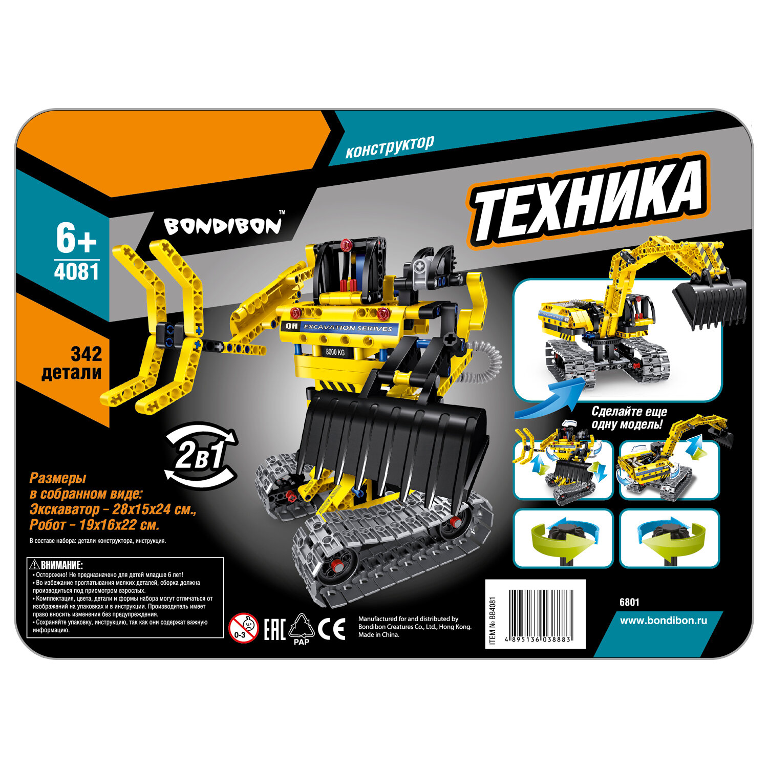 В комплекте 342 детали, из которых можно собрать экскаватор или робота или множество других интересных вещей, которые сможет придумать ребенок.