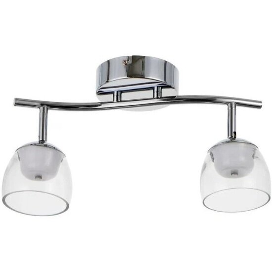 Светильник HIPER H821-1. Изделие предназначено для установки на потолок. снование выполнено из металла в цвете хром и оснащено плафонами прозрачного цвета из стекла в форме овал. В светильнике предусмотрено 2 лампы светодиодные мощностью 25 W с цоколем LED. Рабочая площадь освещения 6 м2. Степень защиты спота выполнена по технологии IP20.