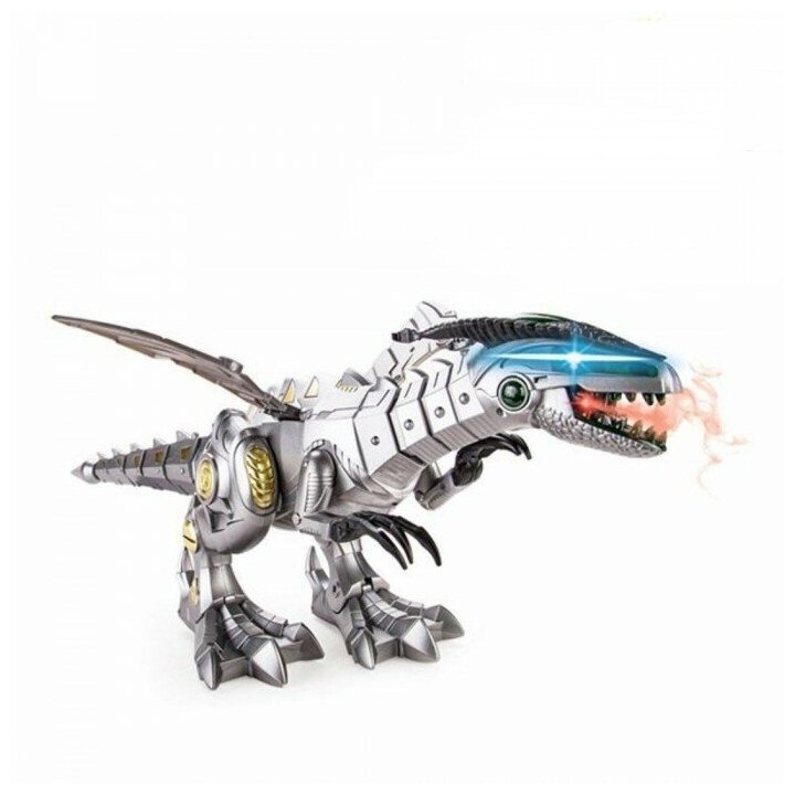 Электронная игрушка «Динозавр» умеет делать столько всего интересного! При включении динозаврик идёт вперёд, двигает головой, крыльями, хвостом и передними лапами. А если в отверстие на его голове предварительно налить немного воды, динозавр будет дышать паром. Игра сопровождается красивой подсветкой в области глаз и рта робота-динозавра, а также грозными рычащими и топающими звуками. В комплекте прилагается ёмкость для заправки динозавра водой. Игрушка работает от 3-х батареек типа АА на 1,5 V (не входят в комплект). Размер динозавра (ДхШхВ) составляет 48х17х20 см. Материал изготовления: пластмасса. Рекомендованный возраст: 3 года +