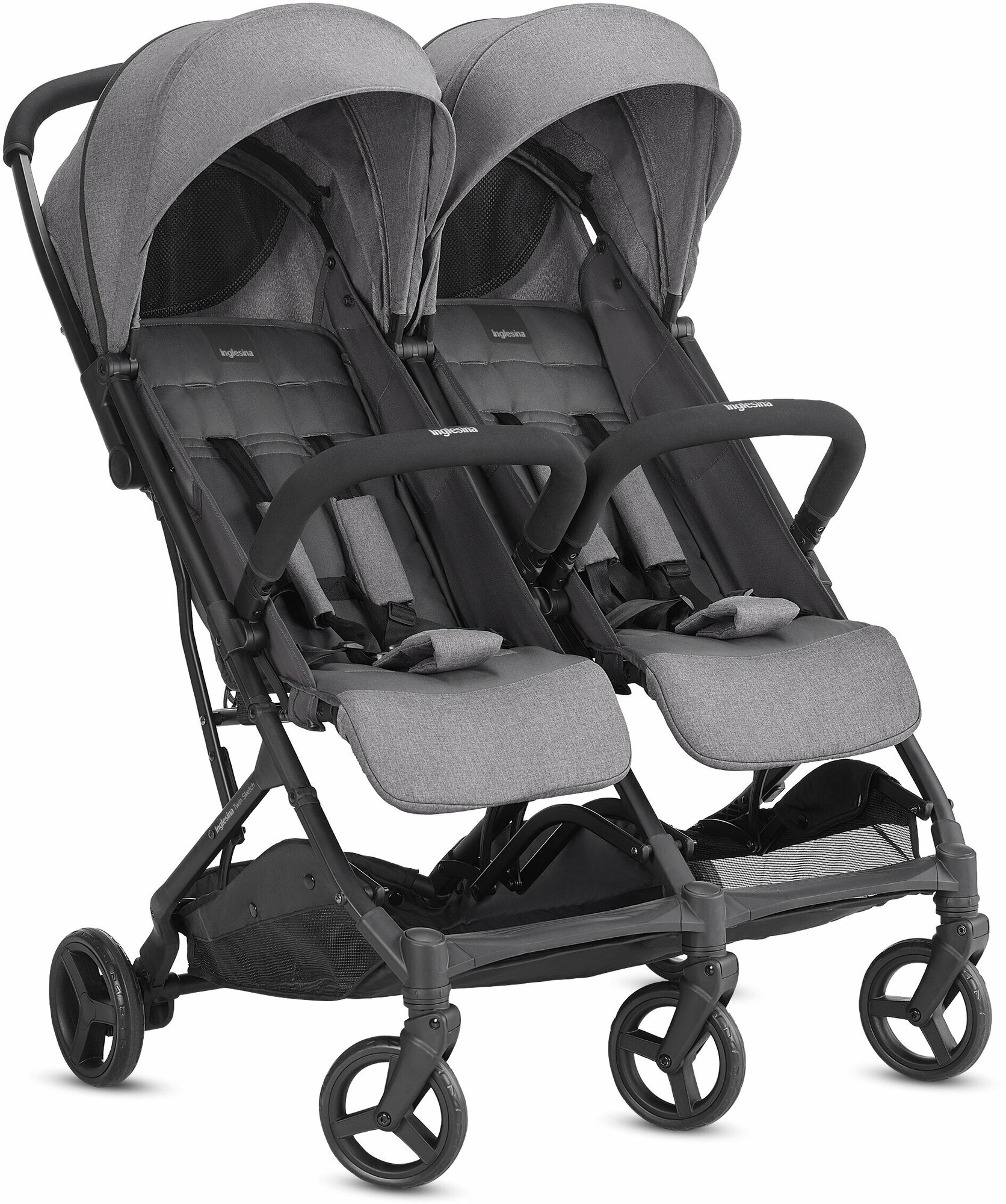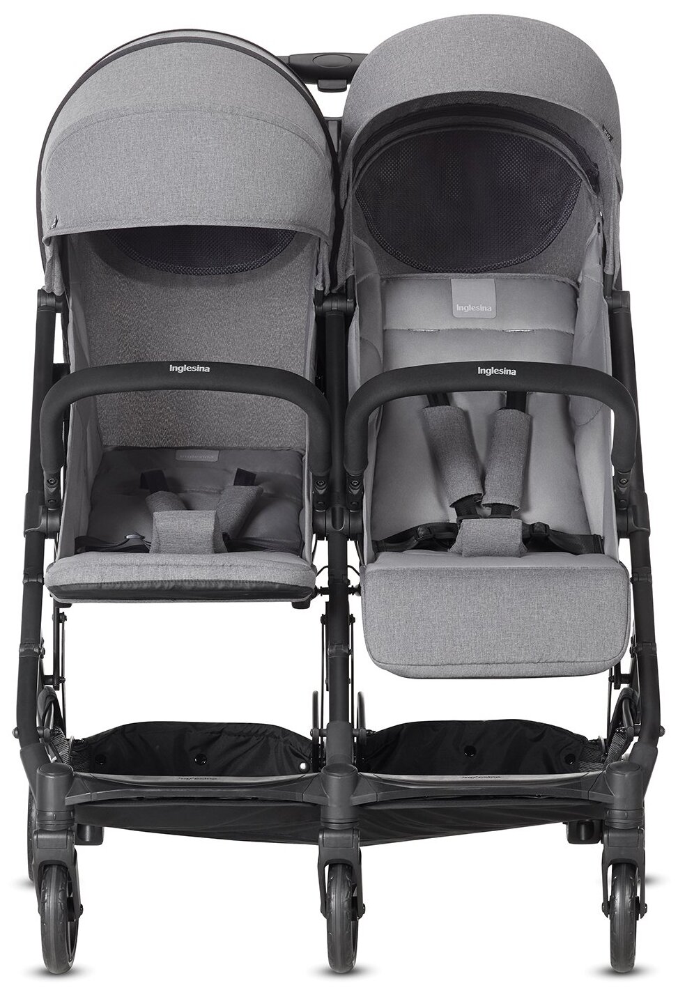 Легкая и компактная прогулочная коляска, которая подходит как для близнецов, так и для детей одной возрастной группы. Подходит для детей от 7 месяцев и до достижения веса 15 кг каждым ребенком. основные преимущества: • Благодаря небольшому весу (всего лишь 12,5 кг) и компактности легко транспортируется и занимает мало места при хранении. • Удобно раскладывается и складывается, в сложенном виде коляска устойчива. • Обеспечивает максимальный комфорт ребенку благодаря: - просторному сиденью для своей категории (28 x 46 x 22 см); - спинке, которую можно опустить в горизонтальное положение до 170° и регулируемой подножке; - раздвижному солнцезащитному капюшону (который защищает малыша даже когда он находится в положении лежа), выполненным из ткани с пропиткой UPF 50+ - мягким вставкам на плечевых ремнях и разделителе между ножек, позволяющим избежать контакта грубой ткани с нежной кожей ребенка. дополнительные преимущества: • Съемный бампер упрощает доступ к сиденью. • Адаптируется к росту ребенка благодаря возможности регулировать по высоте ремень безопасности. • Обеспечивает комфорт во время каждой поездки благодаря большим колесам и амортизации • Вентиляционное окошко, расположенное на задней стороне капюшона, обеспечивает циркуляцию воздуха. • Контур из светоотражающего материала корзины делает вечерние прогулки более безопасными. • Съемная обивка (включая капюшон) подходит для ручной стирки при 30°C. техническая информация Комплектация: • Прогулочная коляска. • 2 съемных бампера • 2 корзины для вещей. Материал колес: композиционный полимерный материал EVA (Этиленвинилацетат) Диаметр колес: Передние - 145 мм Задние - 165 мм