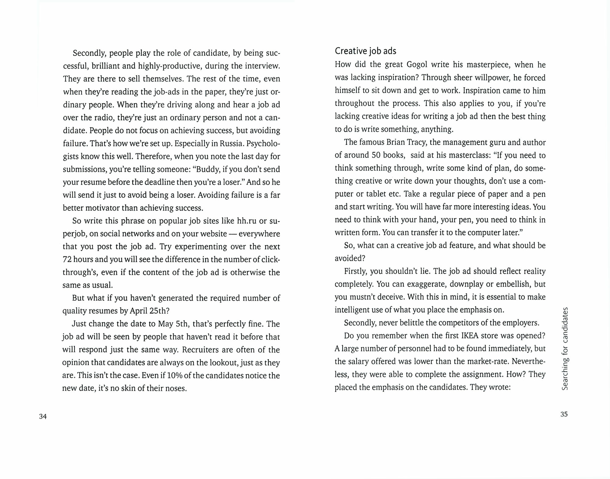 В этой книге специалист по рекрутингу с многолетним опытом делится лучшими кейсами из своей практики. Вы узнаете, как найти идеальных кандидатов, стать привлекательным работодателем, грамотно проводить интервью и многое другое. Технологии и методики рекрутинга, описанные в этой книге, не один раз показывали свою эффективность и могут с успехом применяться в любой компании.