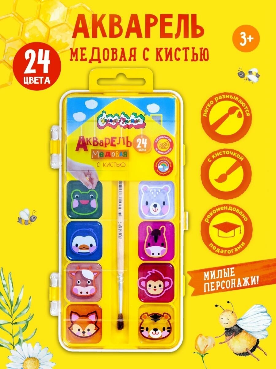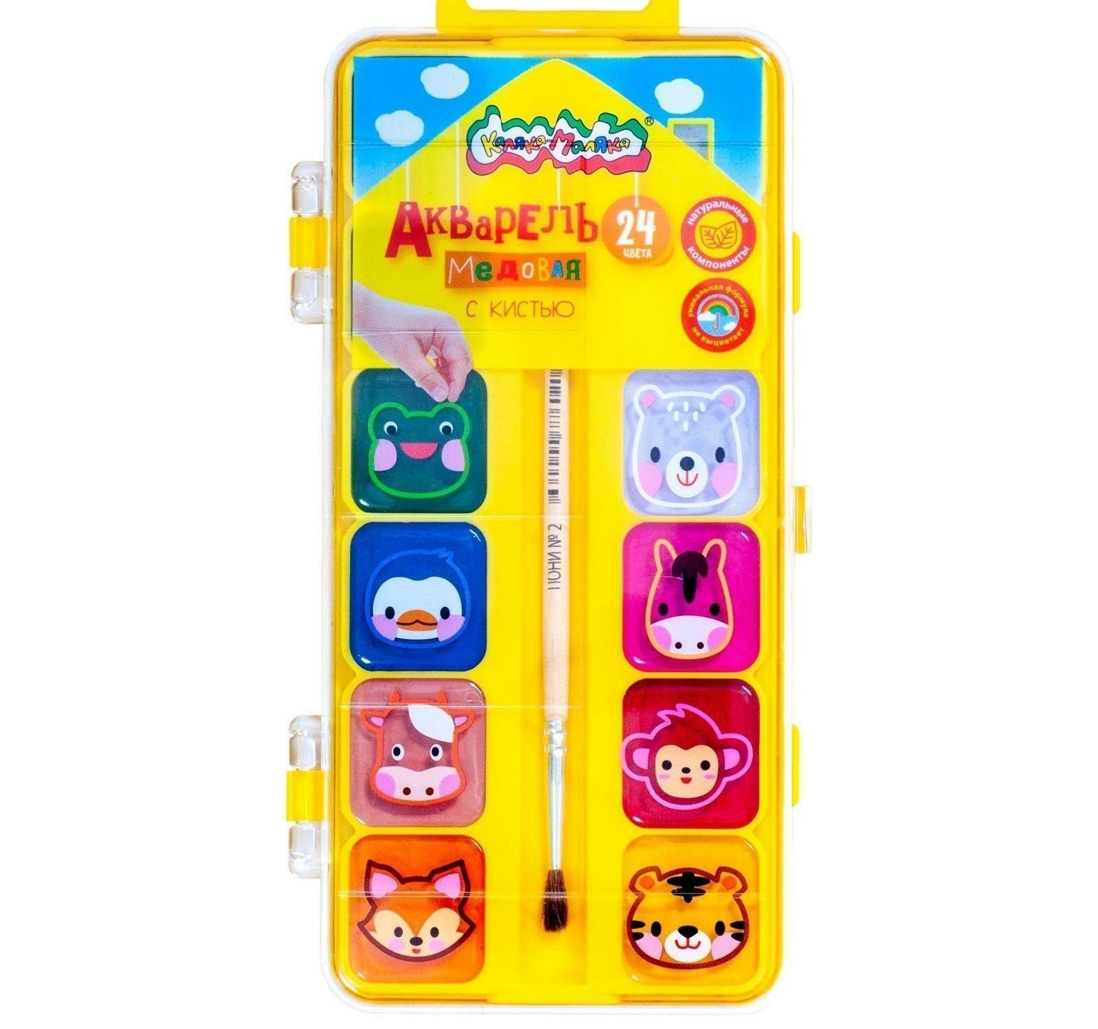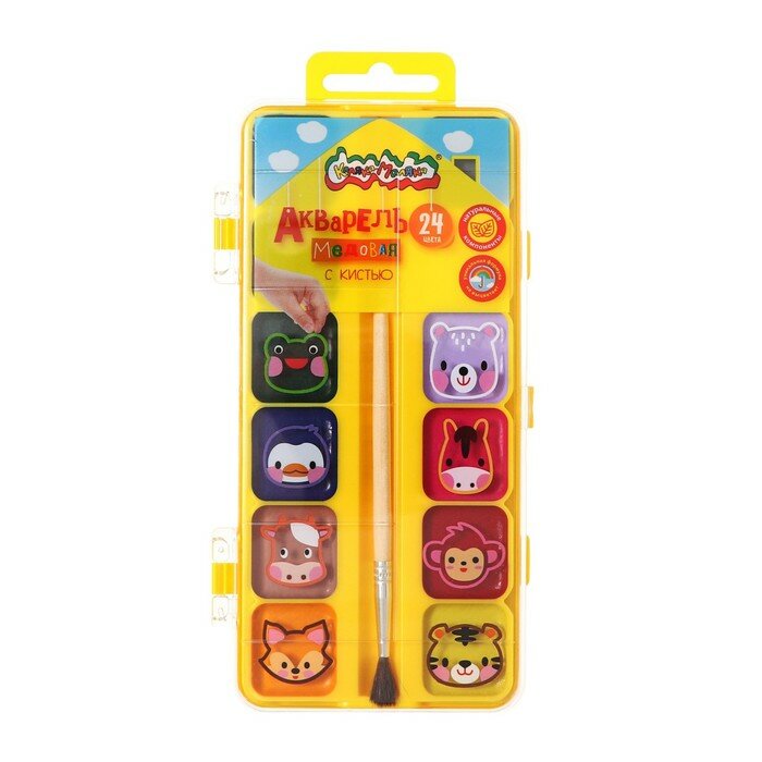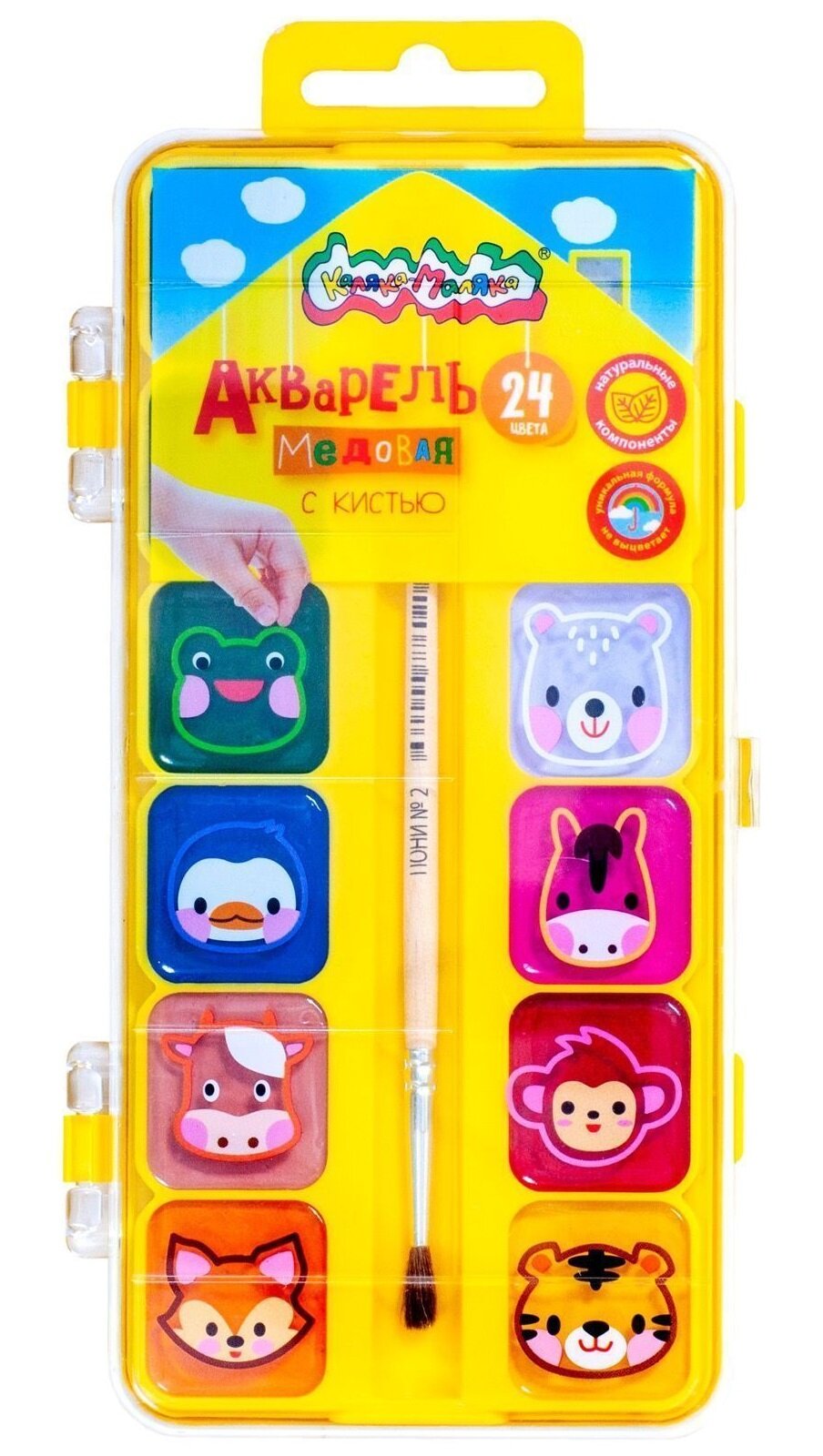 Акварель медовая 24 цвета с кистью (АККМФ24ЕКД) Каляка-Маляка