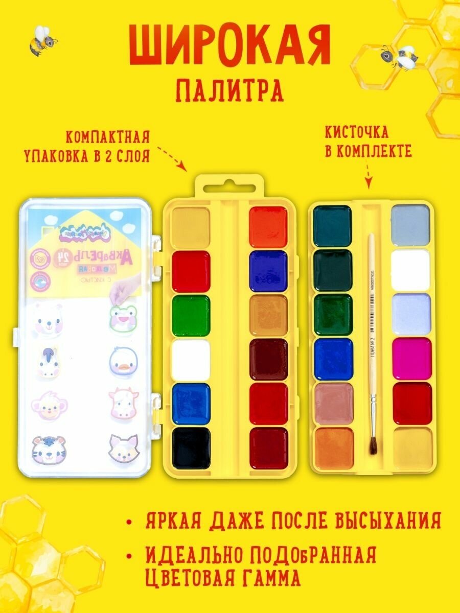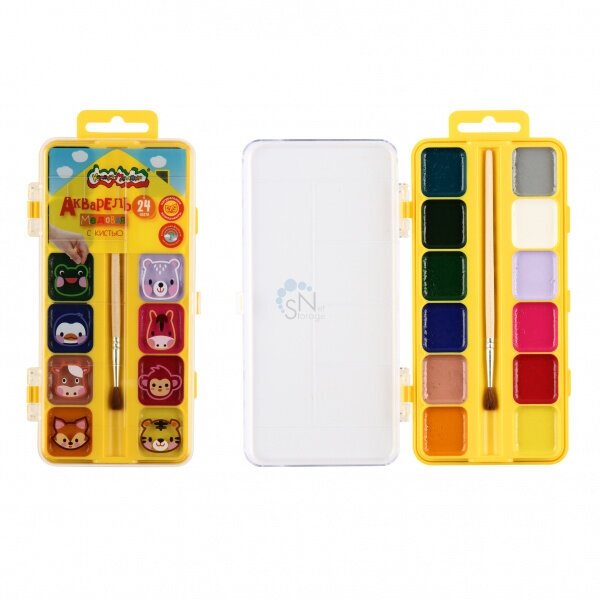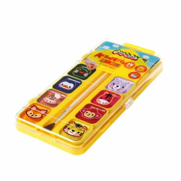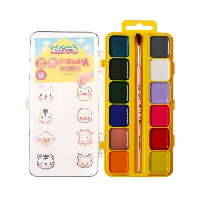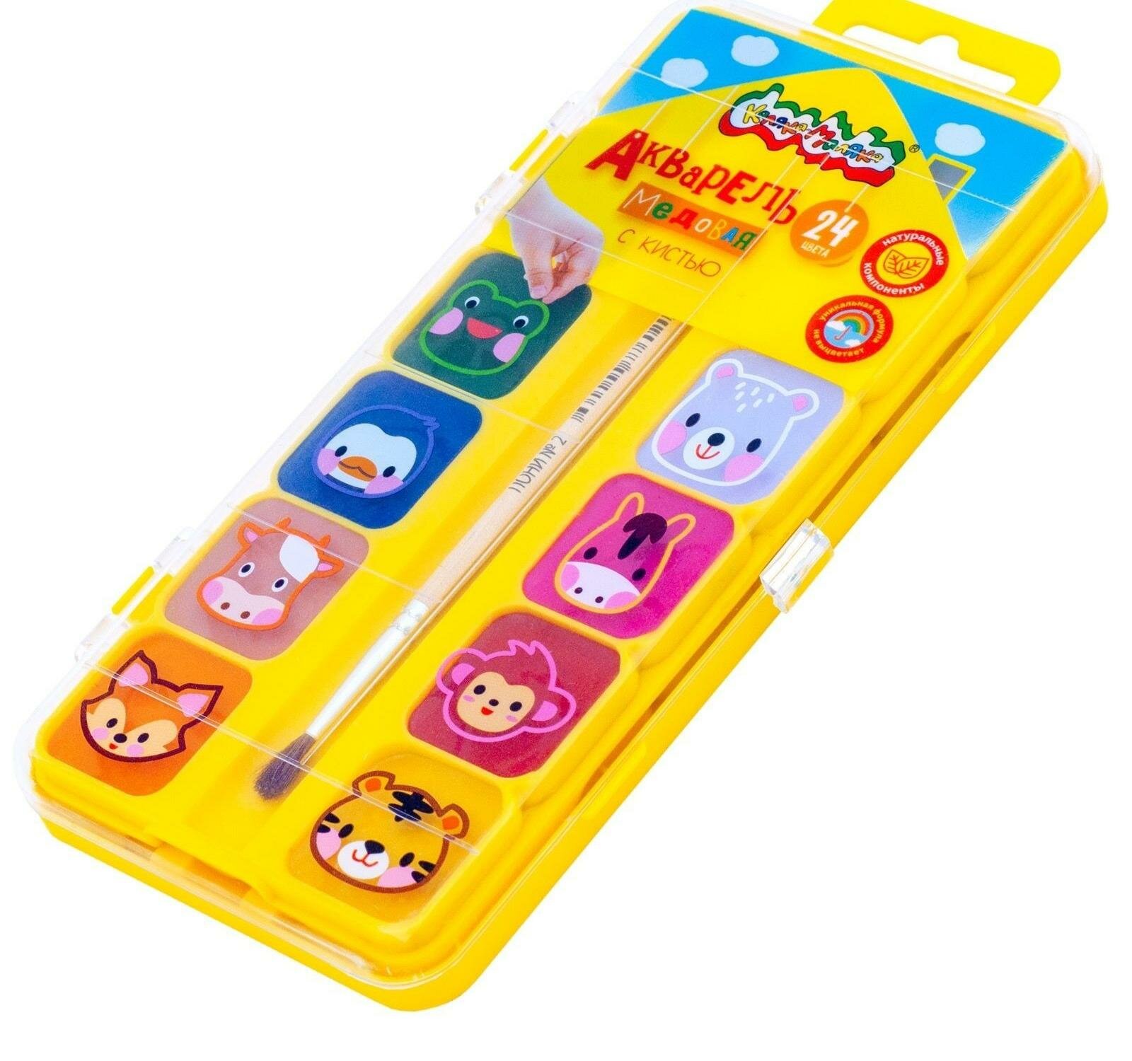 Акварель медовая 24 цвета с кистью (АККМФ24ЕКД) Каляка-Маляка