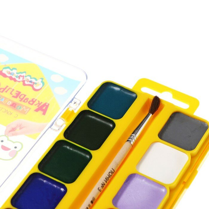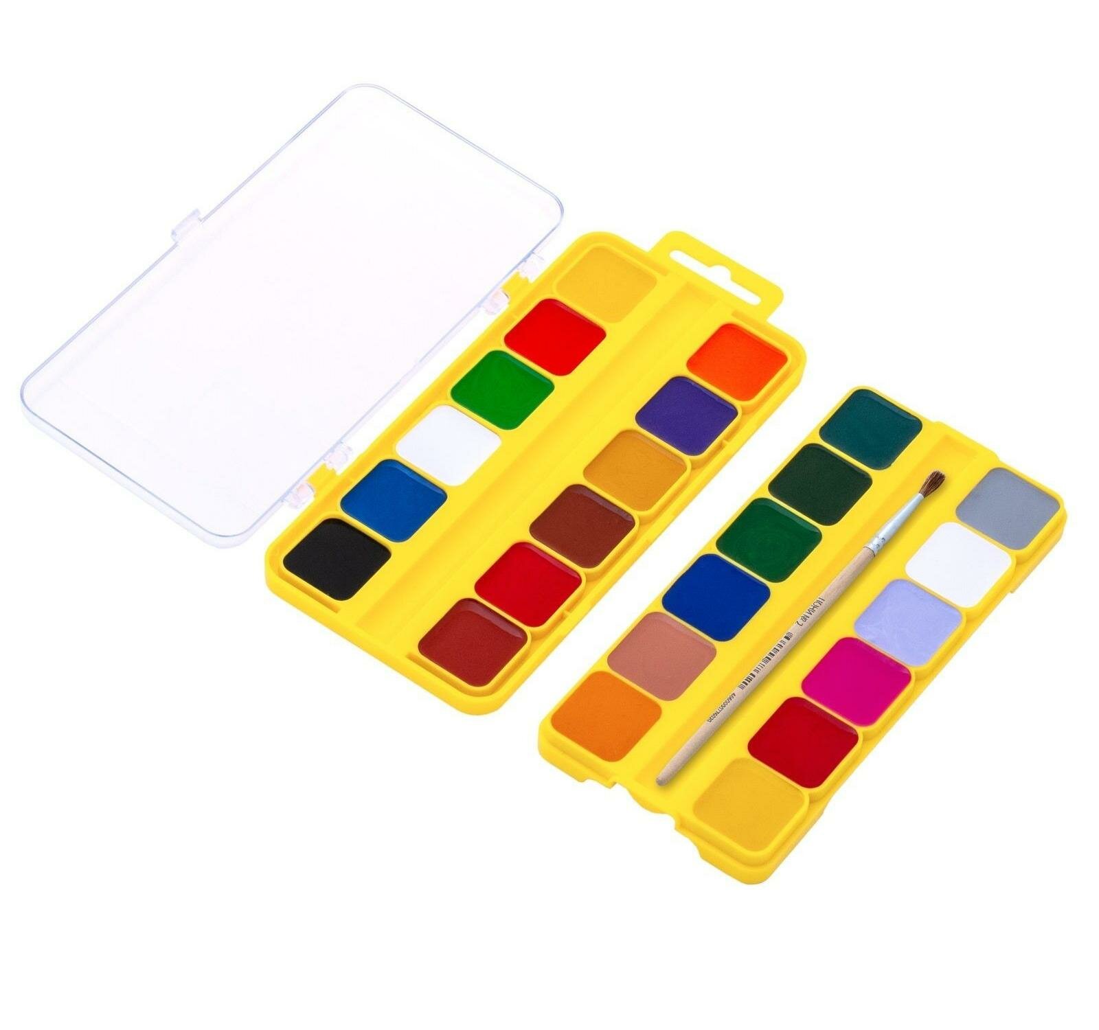 В набор входит качественная кисточка для рисования красками. Акварель выпускается в пластиковой упаковке с европодвесом и прозрачной крышкой, квадратной формой кювет. Упаковка обладает компактными размерами и легким весом. Размер (18,7х9,3х1,6).