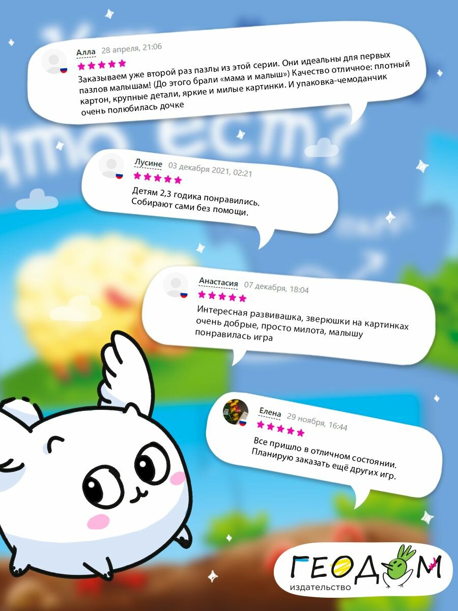 На сегодняшний день товар «Макси-пазлы. Половинки. Кто что ест? 24 детали Геодом» можно купить с кешбеком в 1 магазине: Яндекс.Маркет