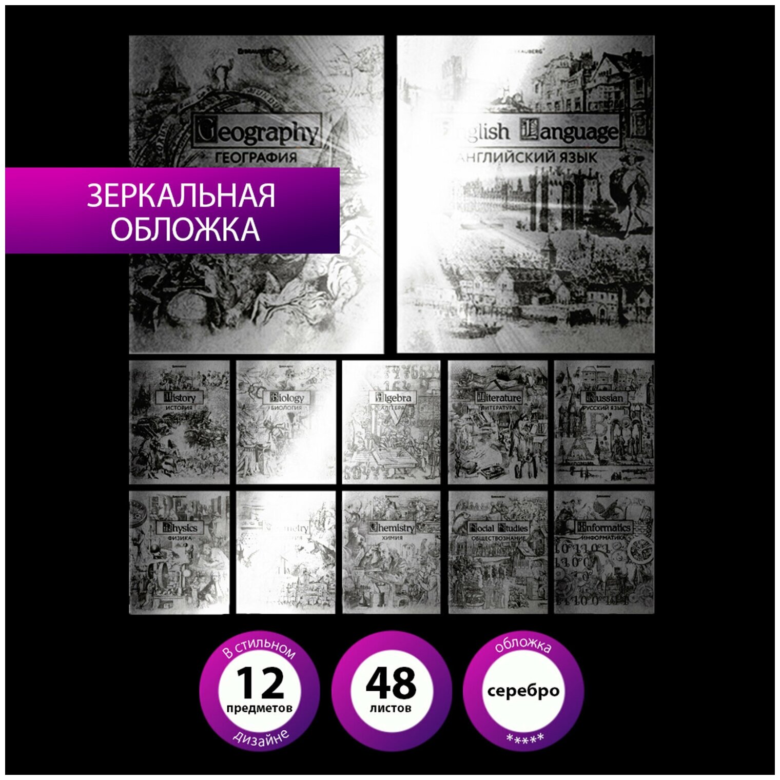 Сервис сравнения цен СкидкаГИД предлагает сравнить цены на товар «Комплект тетрадей 12шт SILVER 48л 404034 Brauberg»