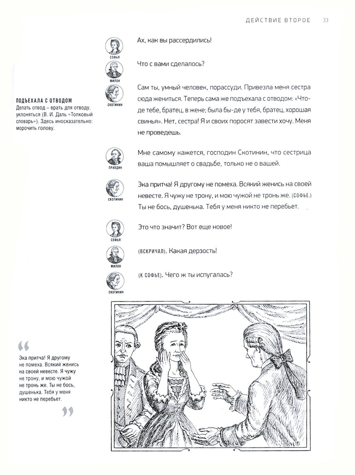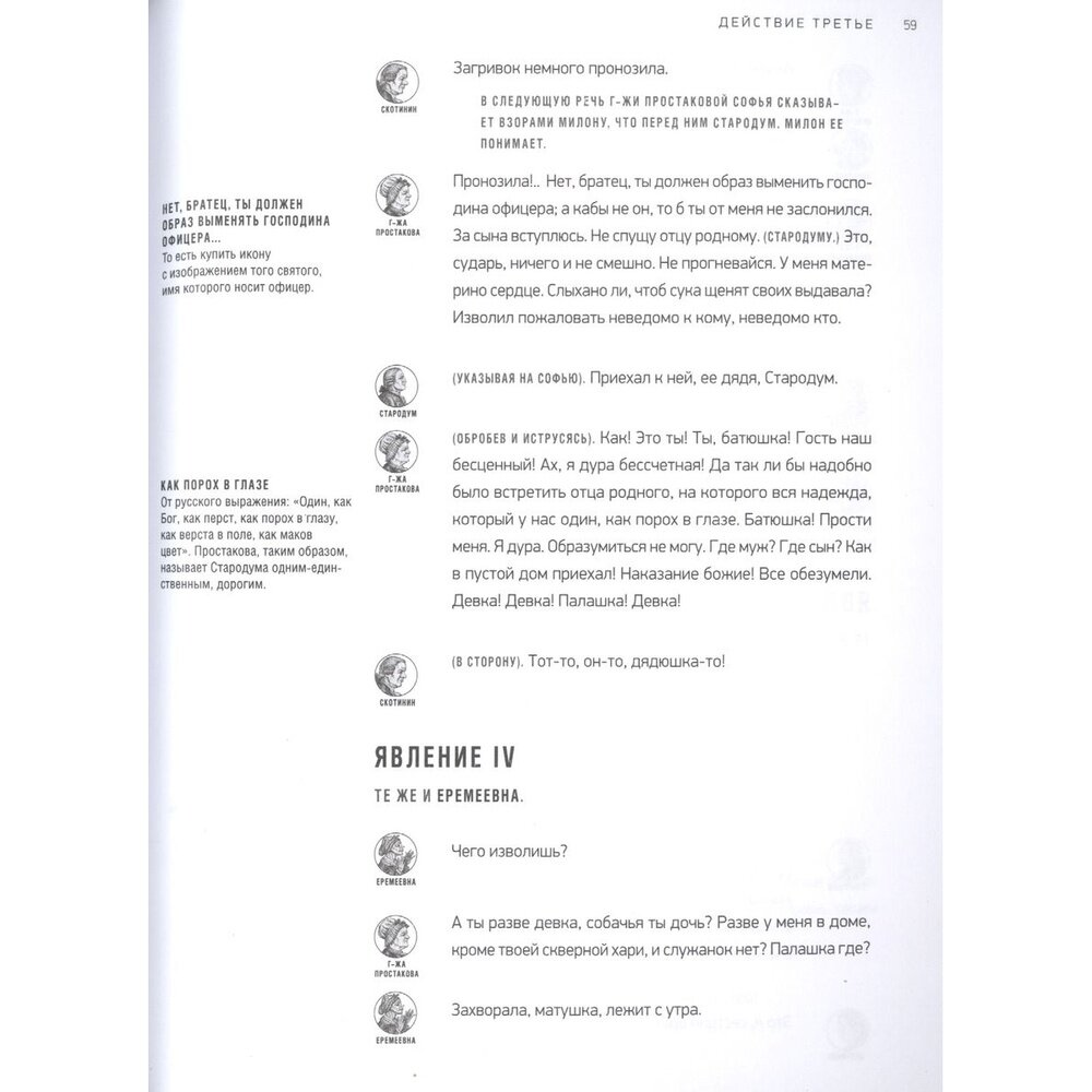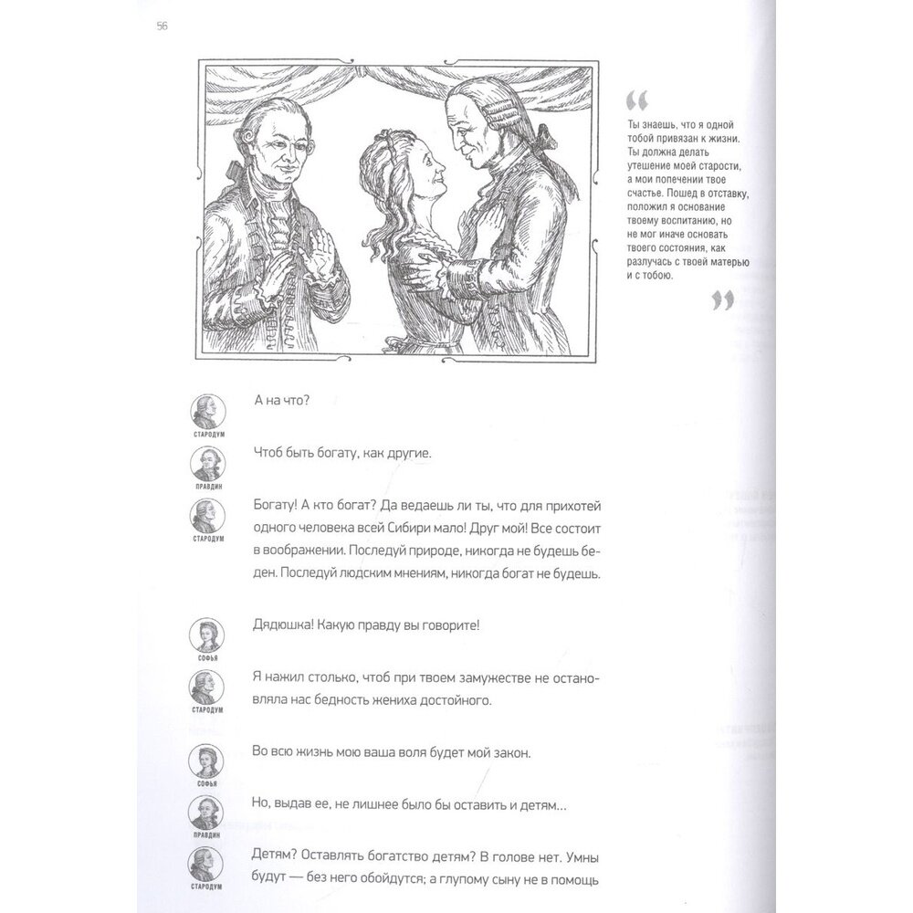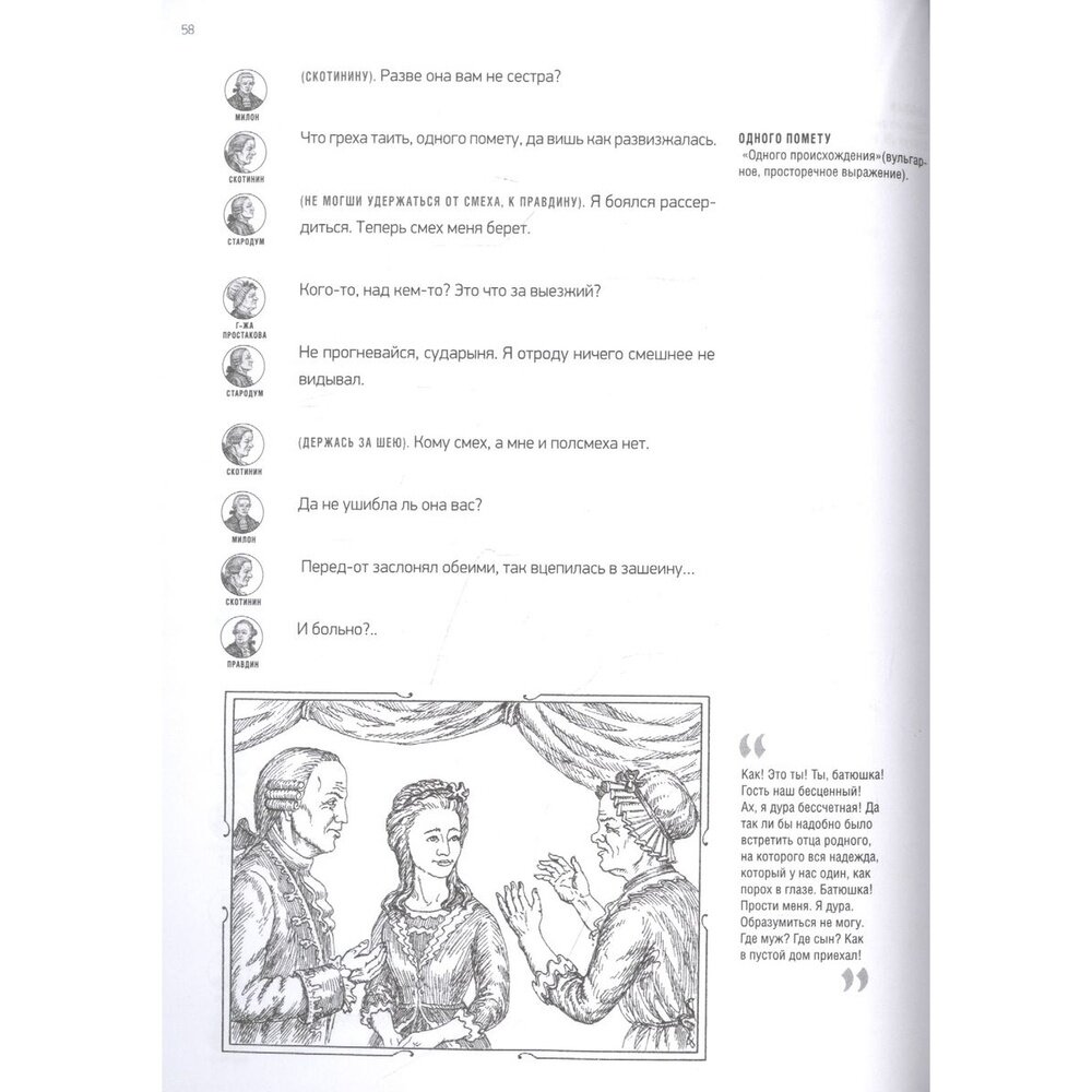 В издании приводится текст знаменитой комедии Д. И. Фонвизина "Недоросль" с постраничными комментариями Александры Тертель и замечательными иллюстрациями Константина Зинина. Книга подготовлена с использованием современных издательских технологий, позволяющих читать пьесу "в лицах" и получать справочную информацию, не отвлекаясь от содержания великого произведения.