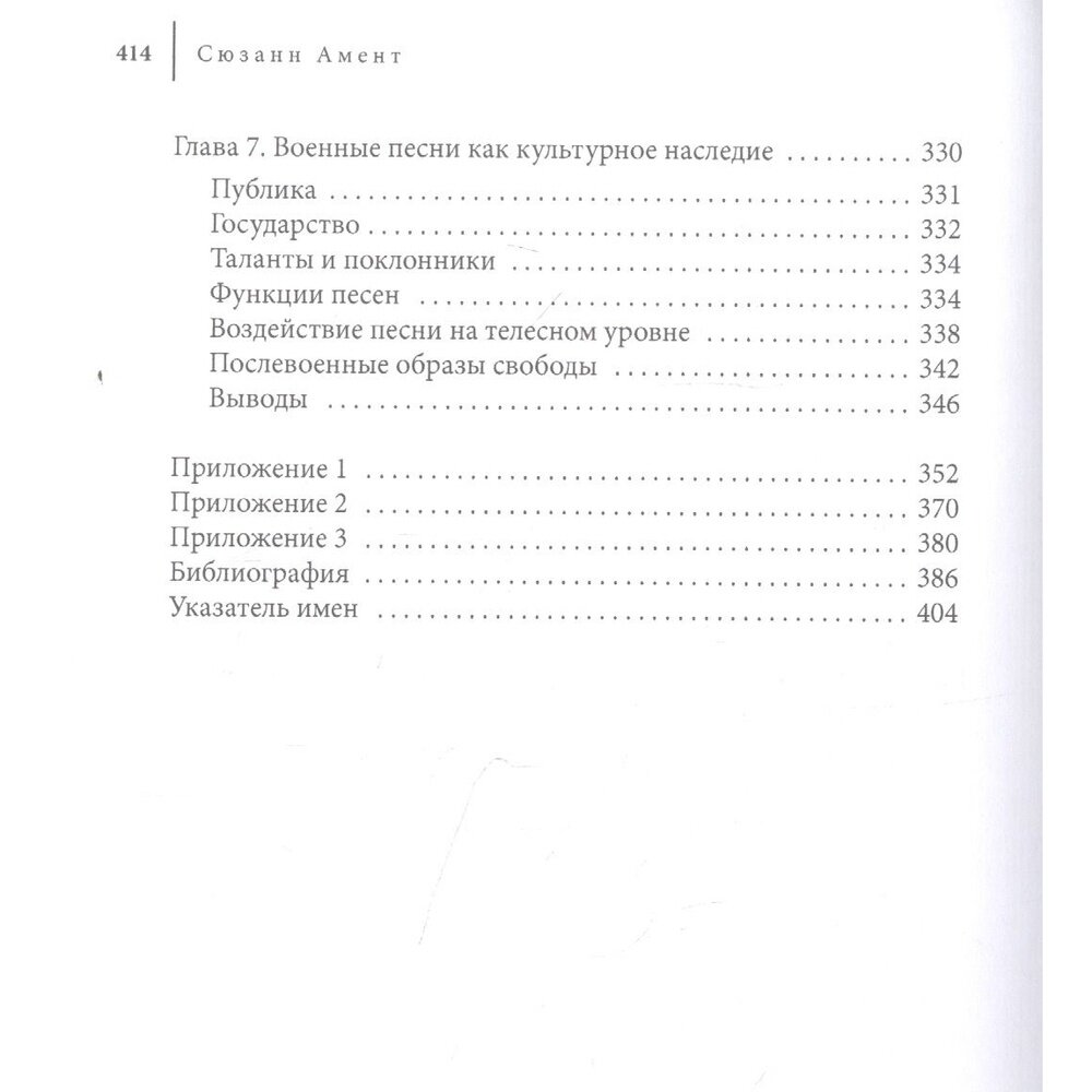 Книга Сюзанн Амент посвящена отношению советского общества к песне и воздействию песни на общество во время Великой Отечественной войны. Автор увлекательно рассказывает о том, как создавались и распространялись песни военной поры, а также о том, как публика воспринимала их и изменяла, приспосабливая к собственным потребностям. Песни той эпохи составляют богатое культурное наследие, отражающее индивидуальный и коллективный опыт, который привел страну к победе.