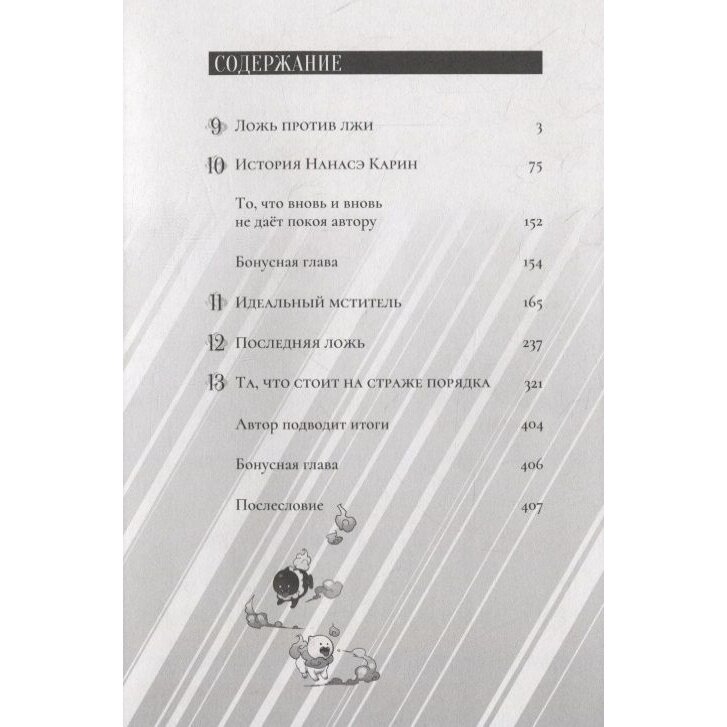 Действительно ли Рикка манипулирует общественным мнением? Смогут ли Котоко и Куро повернуть будущее в нужное им русло? И какое отношение к делу имеет старшая сестра Нанасэ Карин? Прочитав третий том манги "Ложные выводы", вы не только узнаете ответы на эти вопросы, но и станете свидетелями решающей битвы со Стальной Нанасэ!