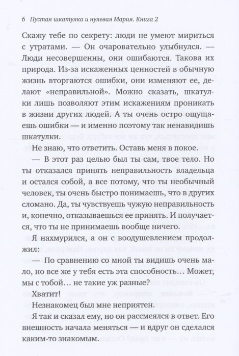 Дошли наконец руки до второго книги про пустую шкатулку и нулевую Марию. Итак, история, как и прошлый раз, будет держать читателя в напряжении с самого начала и до конца. Сюжетно хоть это и продолжение, но при этом история идёт совсем по другому руслу. В ходе истории читателю поведается о том, кем действительно является личность. Мария же потихоньку начнёт раскрываться как человек, а не простой персонаж. Рекомендую
