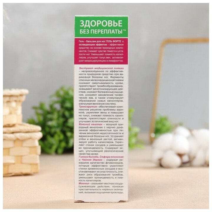 9455111 Гель-бальзам для ног "ВенАктив Форте", 125 мл Эффективность и безопасность геля-бальзама для ног обеспечена синергизмом активных природных компонентов. Троксерутин обеспечивает комплексное решение проблемы варикоза, укрепляет вены и повышает их тонус, снижает ломкость капилляров, препятствует отечности ног. Экстракт медицинской пиявки способствуют образованию новых капилляров, в результате чего улучшается микроциркуляция крови и разгружается венозная система. Ферменты экстракта медицинской пиявки ускоряют заживление трофических язв, улучшают состояние кожи. Конский каштан укрепляет стенки сосудов и уменьшает их проницаемость, устраняет венозный застой, обладает антисептическим, регенерирующим, болеутоляющим эффектом, снижает риск тромбообразования.