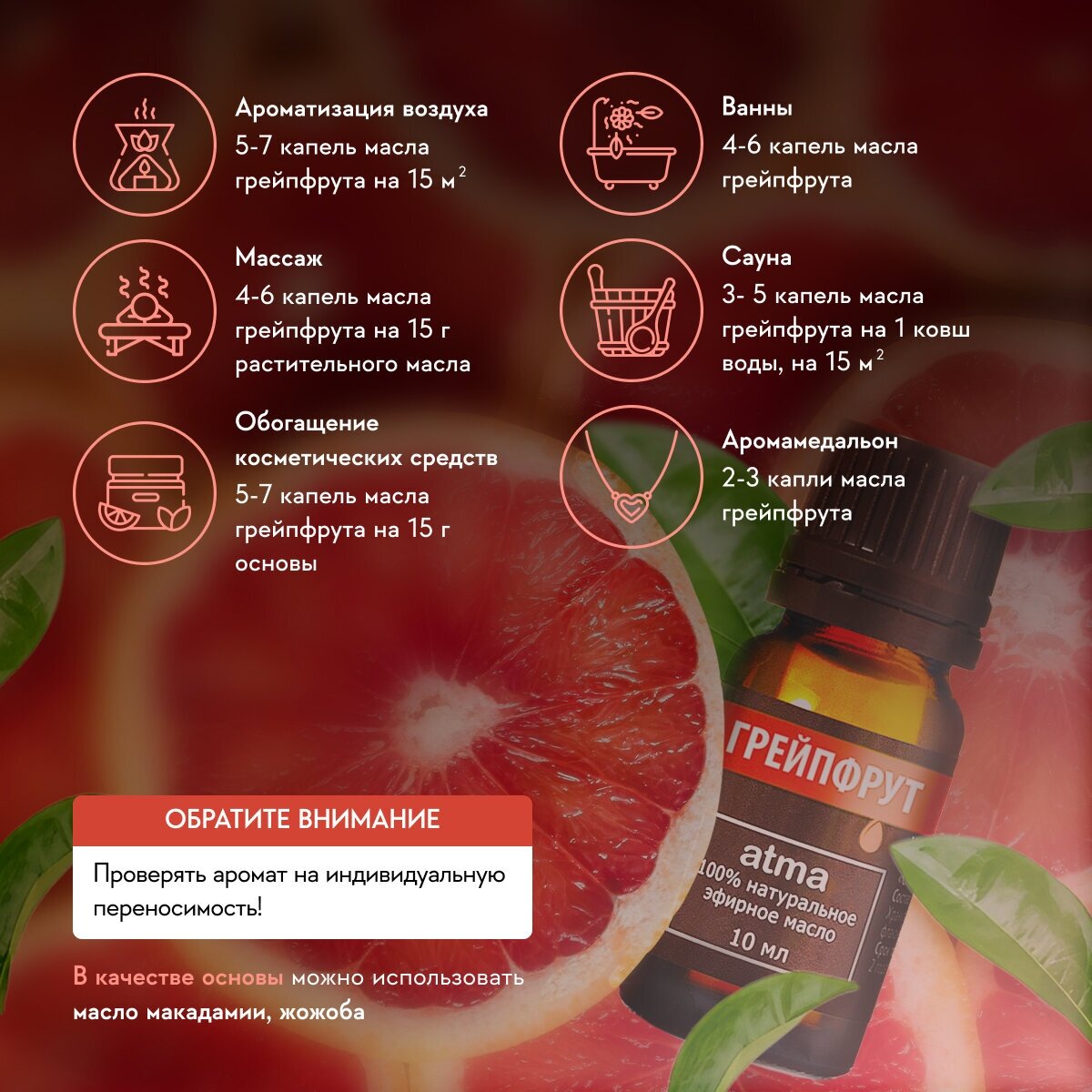 На сегодняшний день товар «Масло эфирное Atma Грейпфрут 10мл» можно купить с кешбеком в 1 магазине: Vprok (Перекресток)