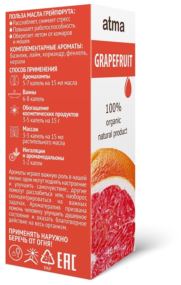 Масло эфирное Atma Грейпфрут 10мл