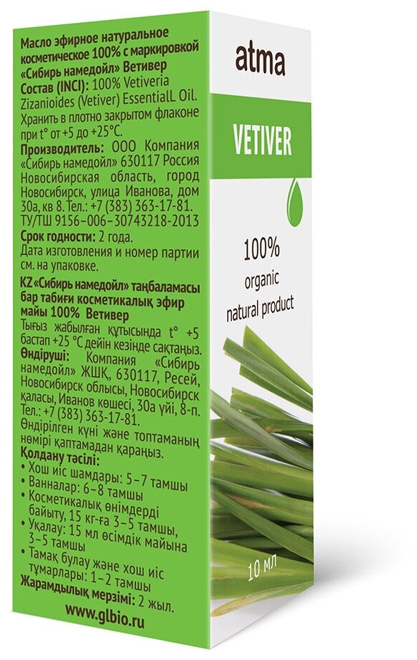 Масло эфирное Atma Ветивер 10мл