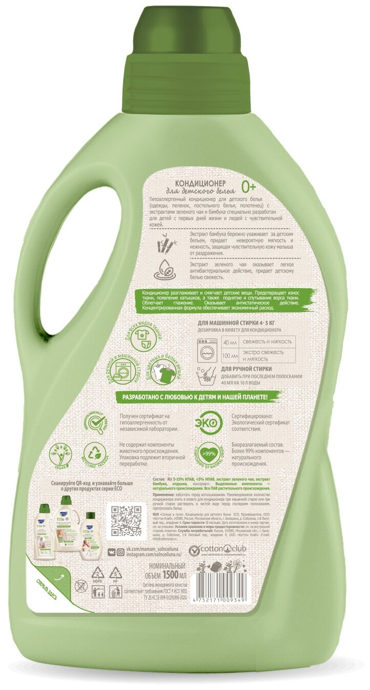 Кондиционер Солнце и Луна ECO для детского белья Зеленый чай и бамбук 1.5л