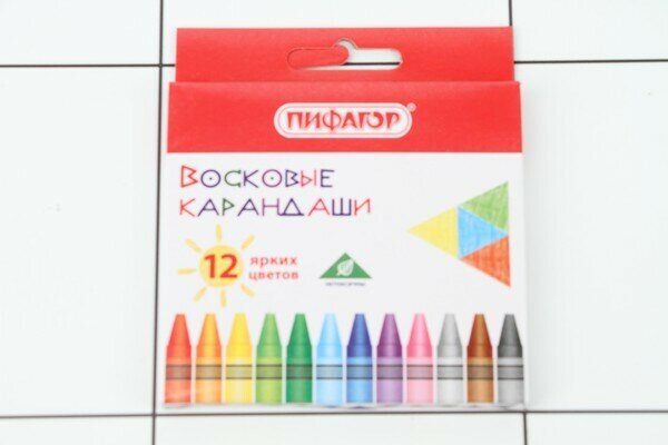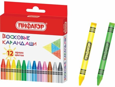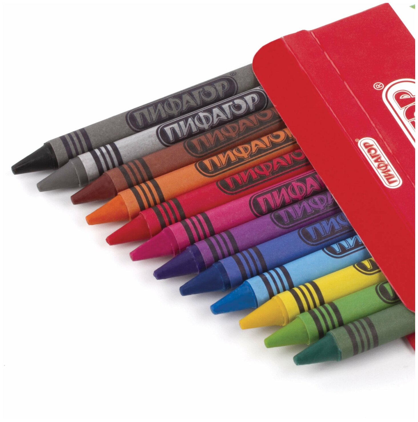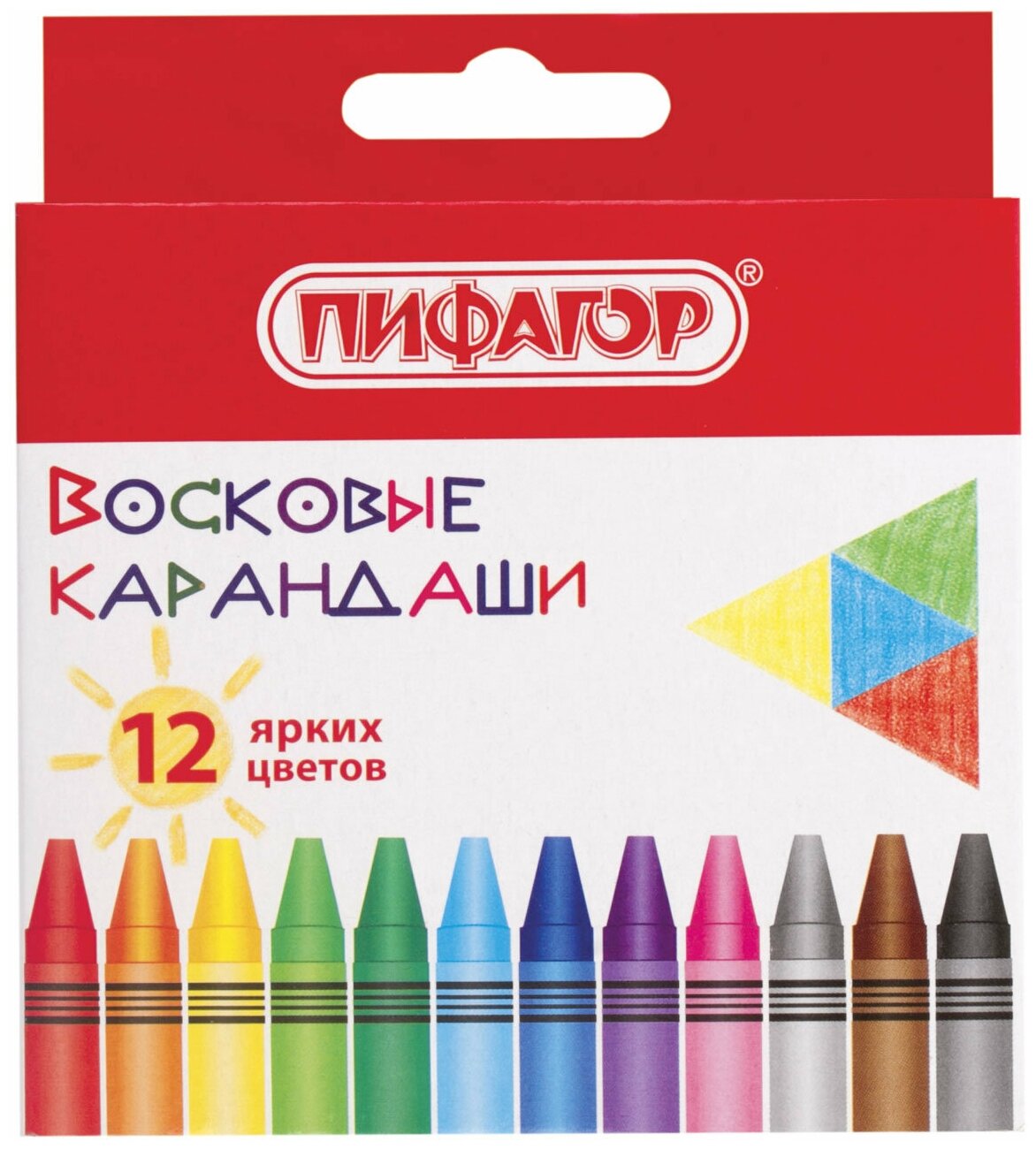Карандаши восковые Пифагор Солнышко 12 цветов