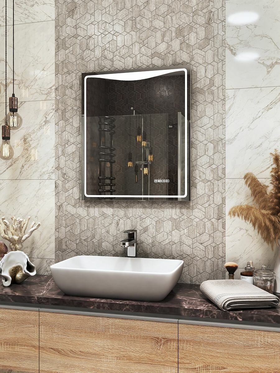 Зеркало Vigo Eva Media L 60 с подсветкой, сенсорным управлением и медиа-блоком (USB, Bluetooth).