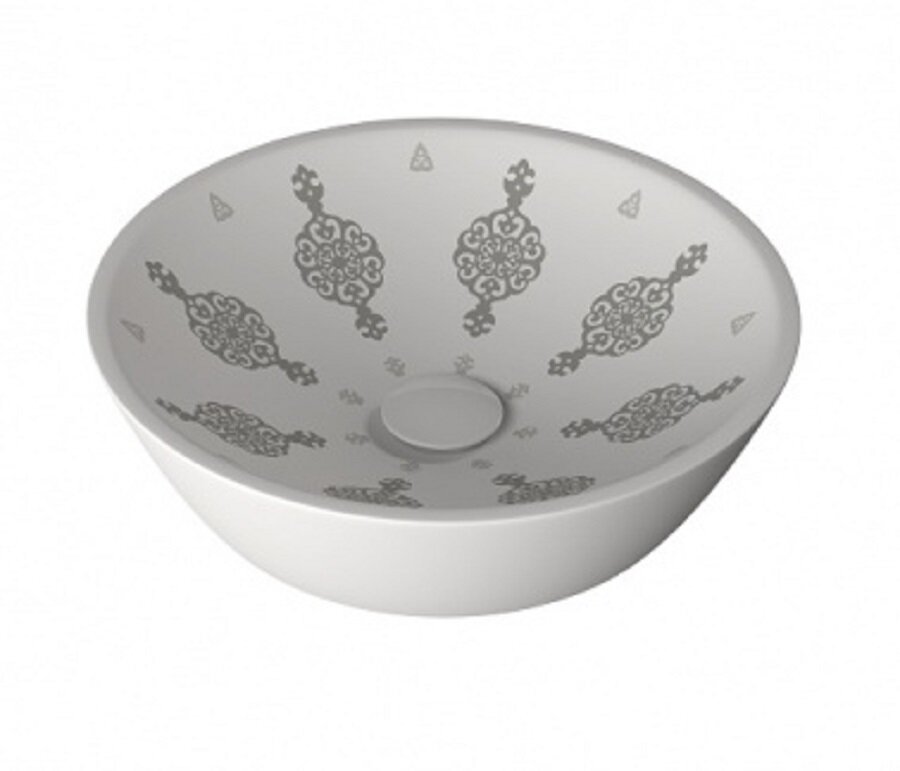 Фарфоровая раковина белая с декором Patrizia выглядит стильно и современно.