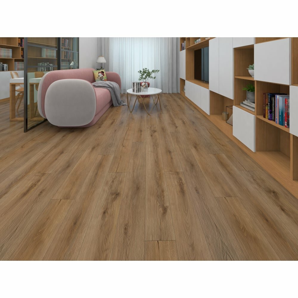 Виниловый ламинат Floorwood поверхность структурная, рустикальное тиснение, однополосный, влагостойкий, соединение замковое производится на основе каменно-полимерного композита SPC. Покрытие можно монтировать на площади до 200 м2 без использования порожков. Рисунок имитирует натуральную древесину и придает помещению уют. Классический цвет напольного покрытия не обязывает к дополнительным стилистическим нюансам.